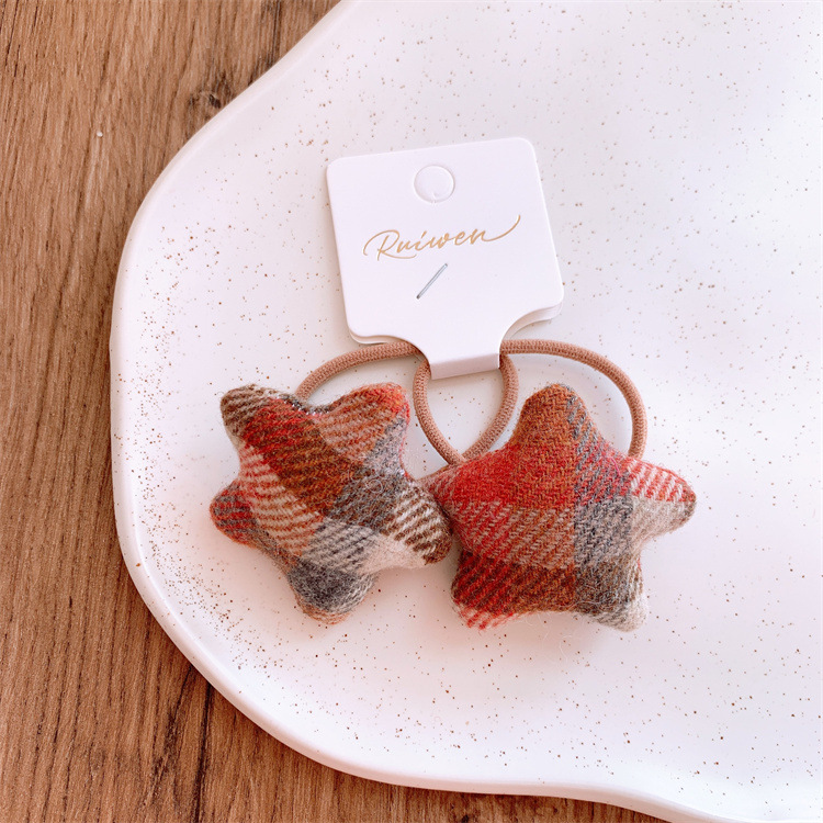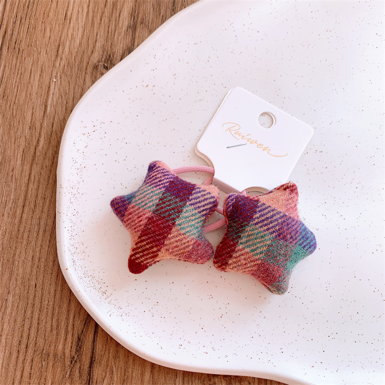 새로운 어린이 패브릭 체크 컬러 5 앵글 스타 헤어 링 어린 소녀 헤어 밴드 고무 밴드 헤드 로프 페어 포워딩 로프