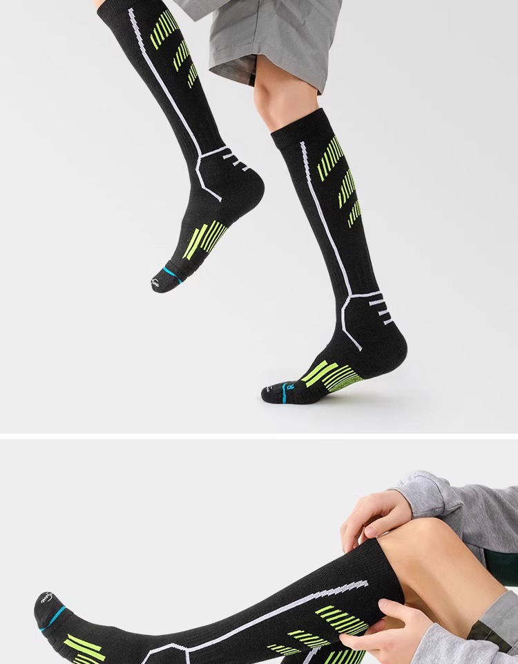 주지 스키 양말 스포츠 양말 높은 배럴 가을과 겨울 코튼 두꺼운 수건 바닥 따뜻한 양모 전문 스키 양말 블랙