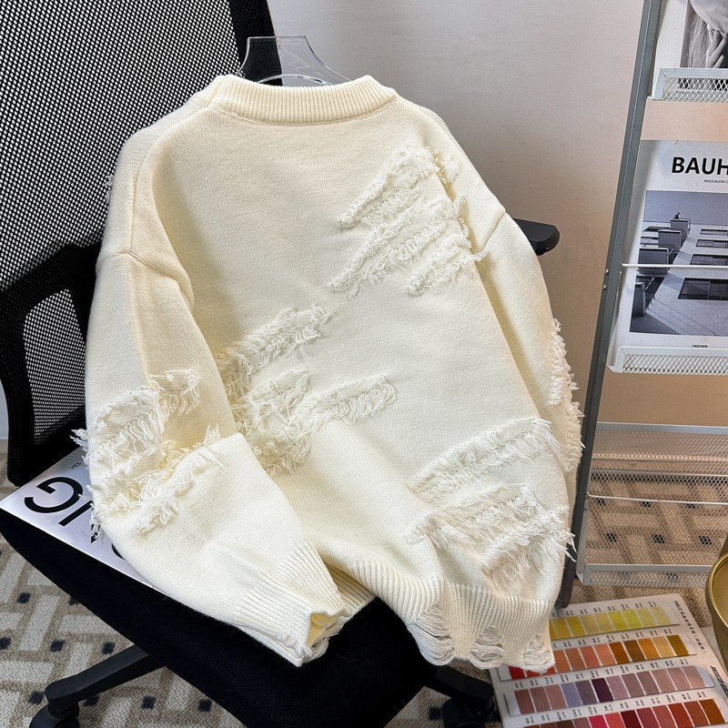 독특한 크루 넥 스웨터 남자 가을 겨울 유행 브랜드 루즈 니트 스웨터 남자 일본 스타일 레트로 게으른 스웨터 코트