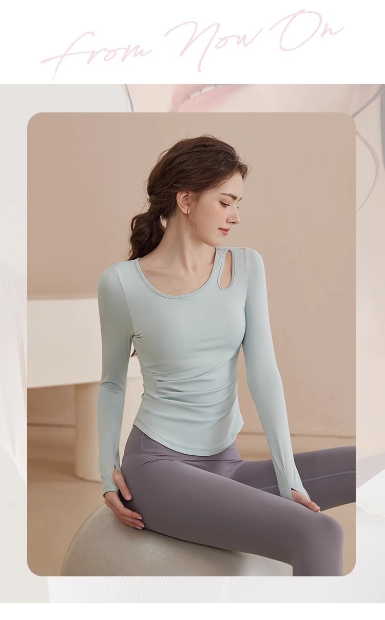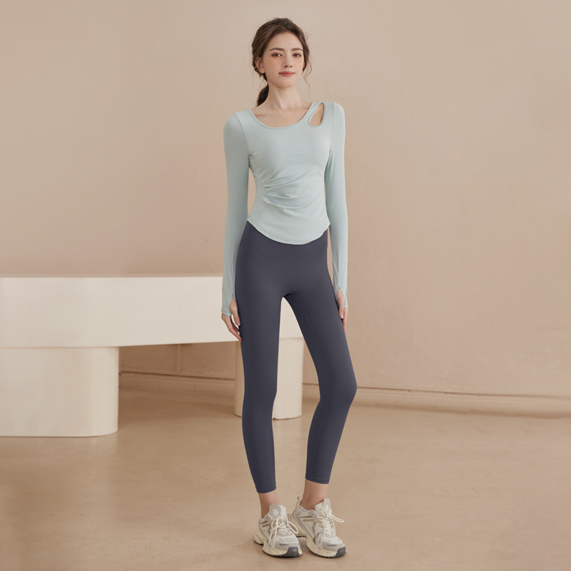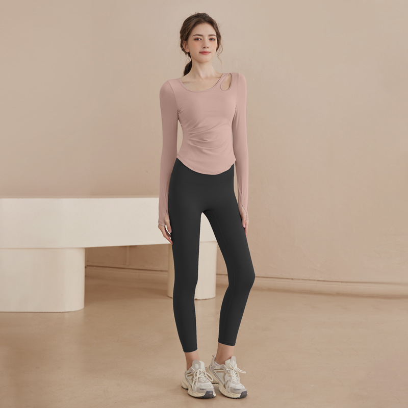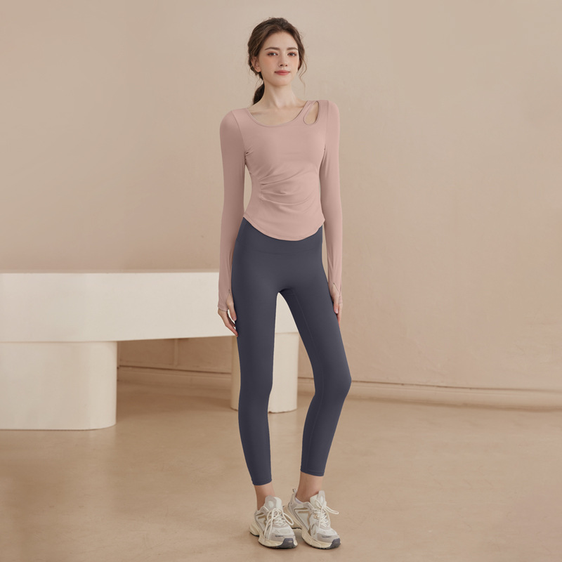 요가 의류 여성 2025 봄과 가을 새로운 스포츠 빠른 건조 필라테스 훈련 피트니스 의류 긴 소매 탑 세트 도매스토어 가기