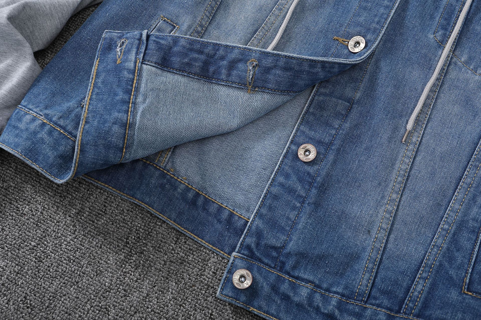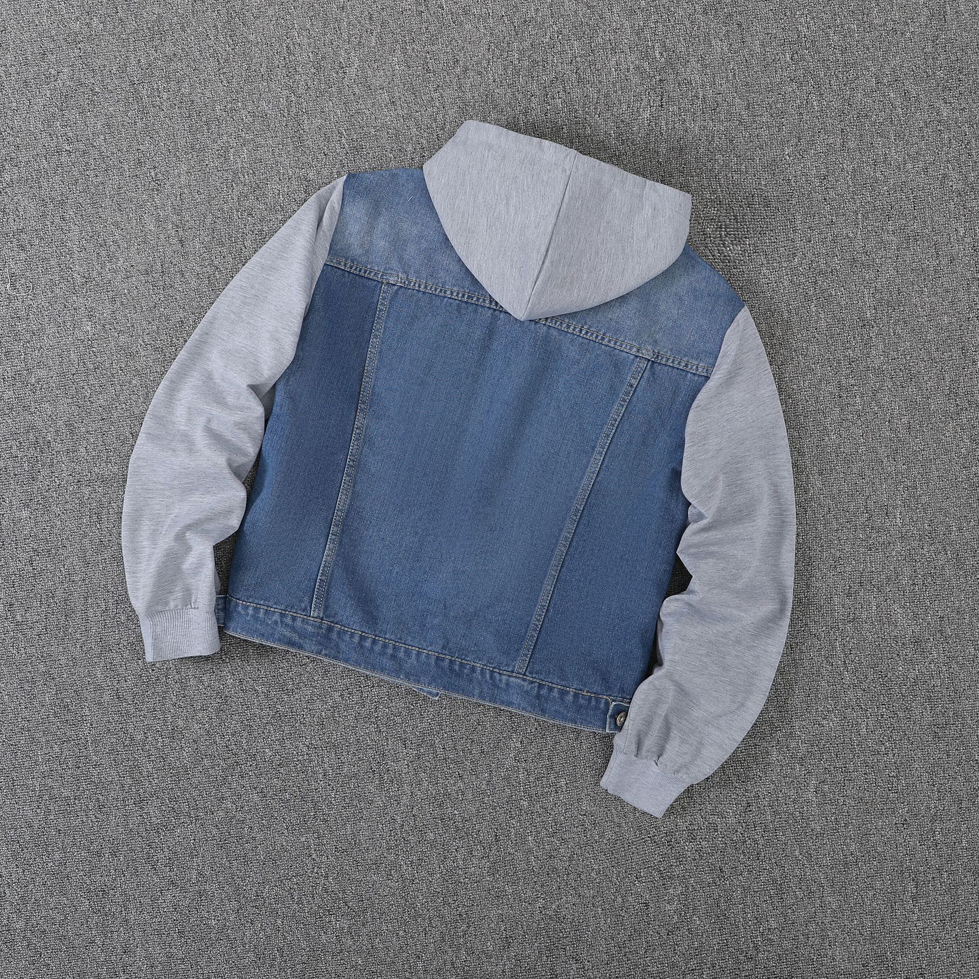 아마존 대외 무역 새로운 후드 스티칭 데님 코트 여자 느슨한 슈퍼 플러스 사이즈 탑 재킷 가슴 점프 6