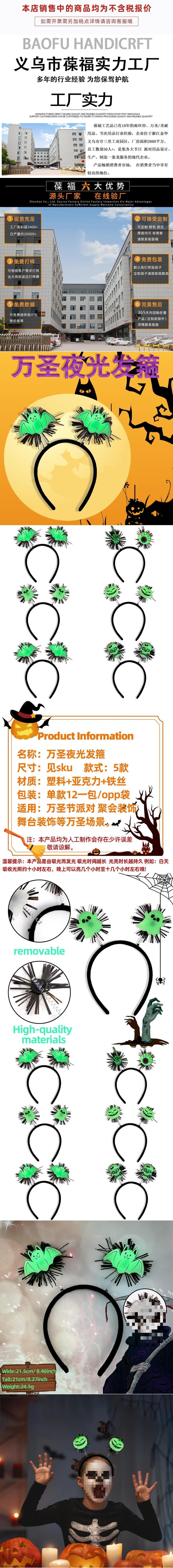할로윈 머리띠 빛나는 유령 박쥐 머리 후프 유령 축제 파티 빛나는 소품 공포 두개골 머리 버클 헤어 액세서리스토어 가기
