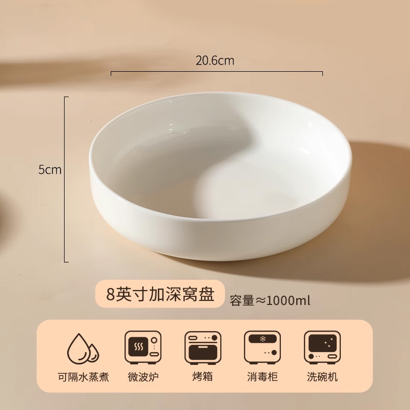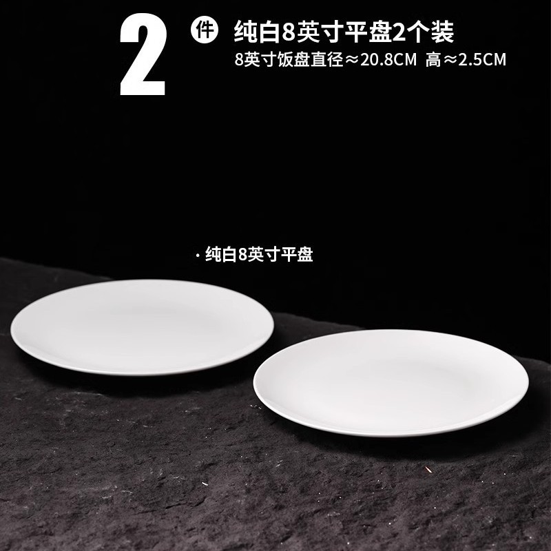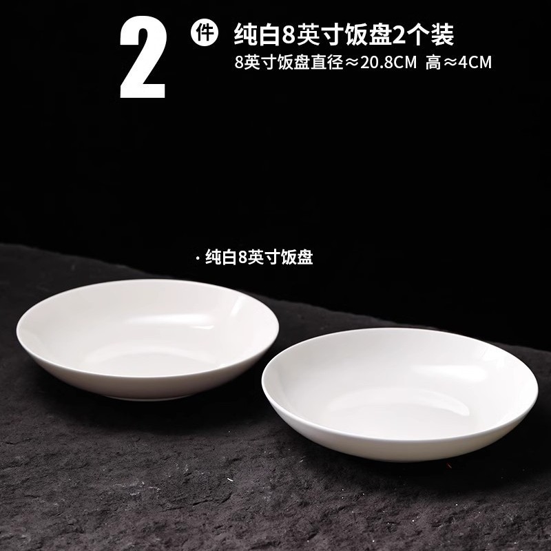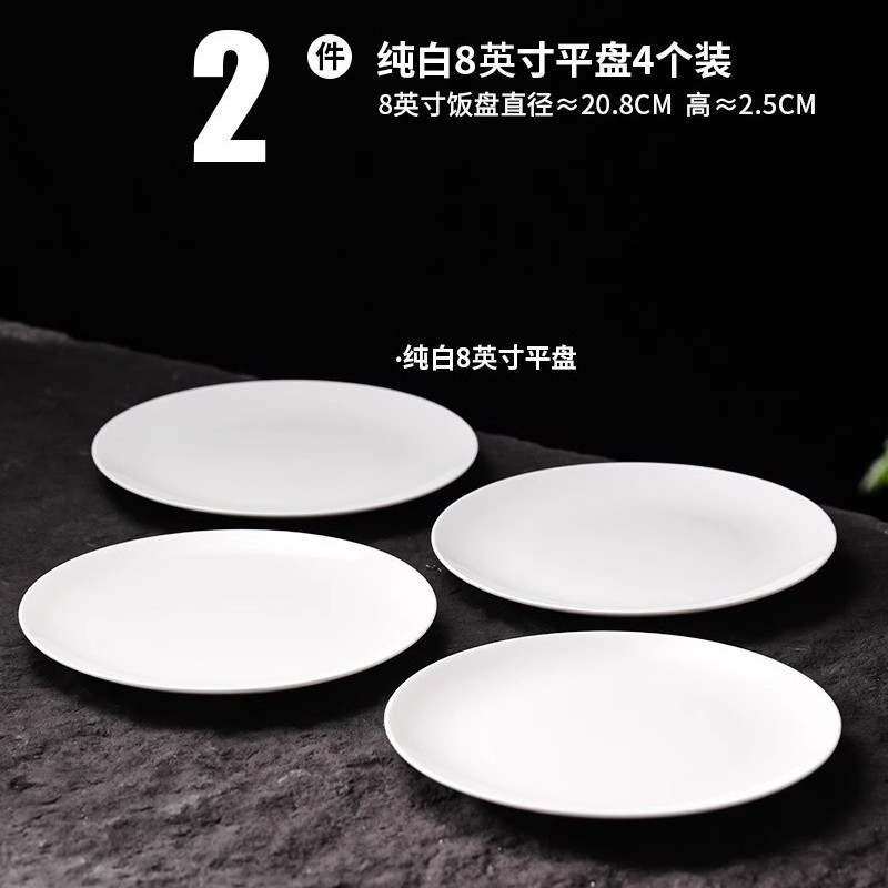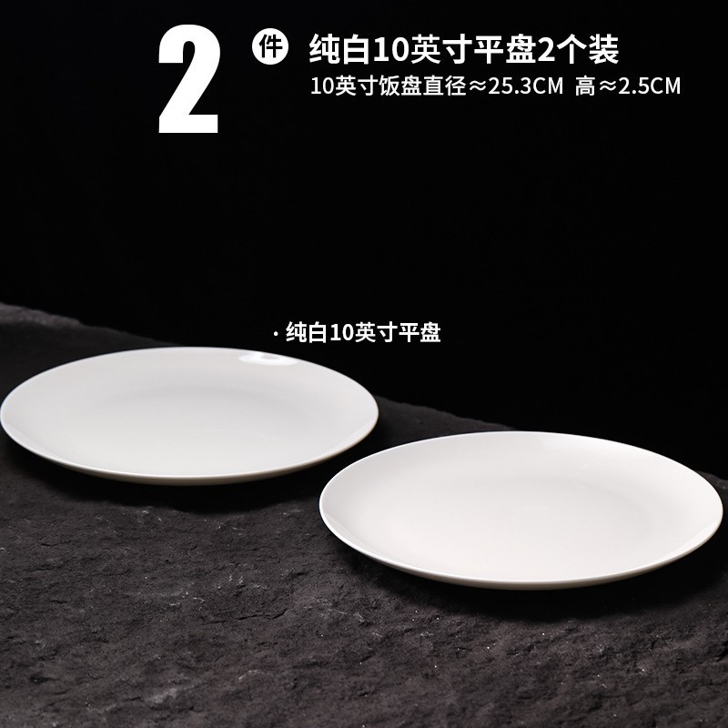 순수 화이트 플레이트 접시 가정용 2024 새로운 고온 화이트 도자기 디너 플레이트 플랫 플레이트 스테이크 플레이트 디스크 언더 유약 컬러 딥 플레이트