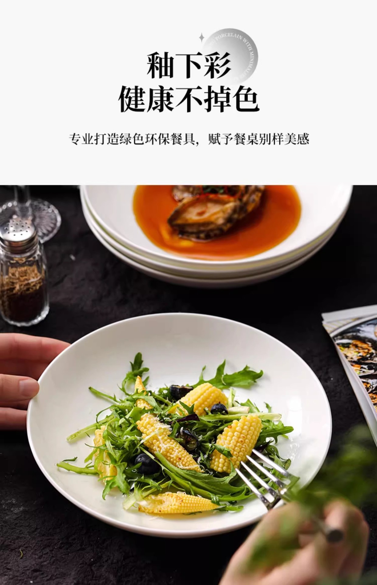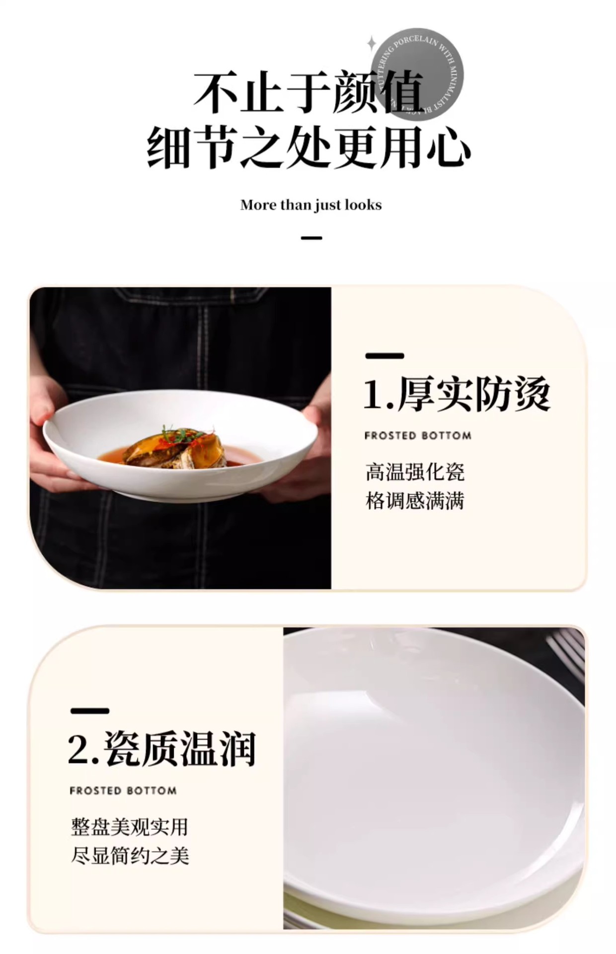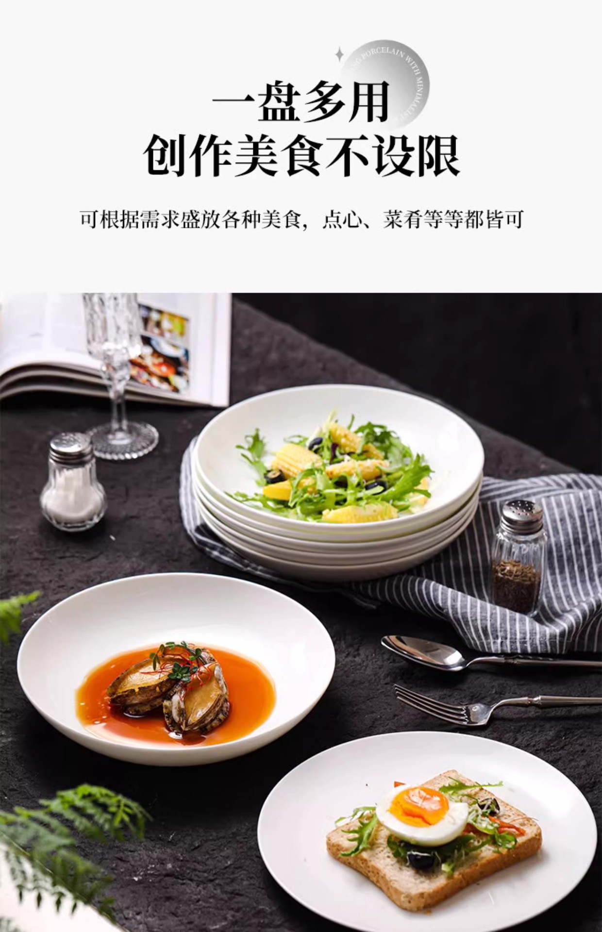 순수 화이트 플레이트 접시 가정용 2024 새로운 고온 화이트 도자기 디너 플레이트 플랫 플레이트 스테이크 플레이트 디스크 언더 유약 컬러 딥 플레이트