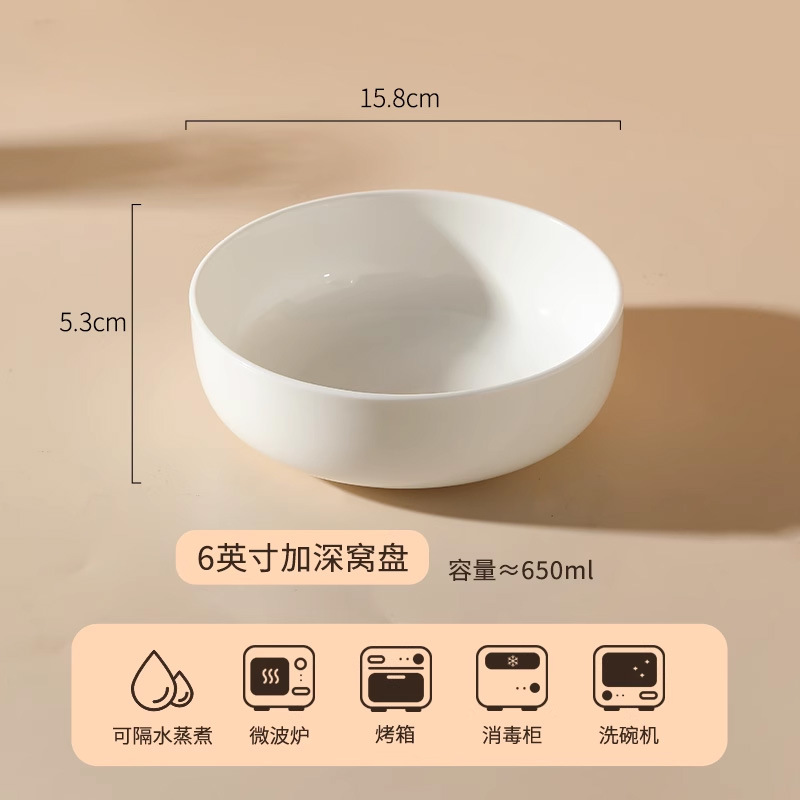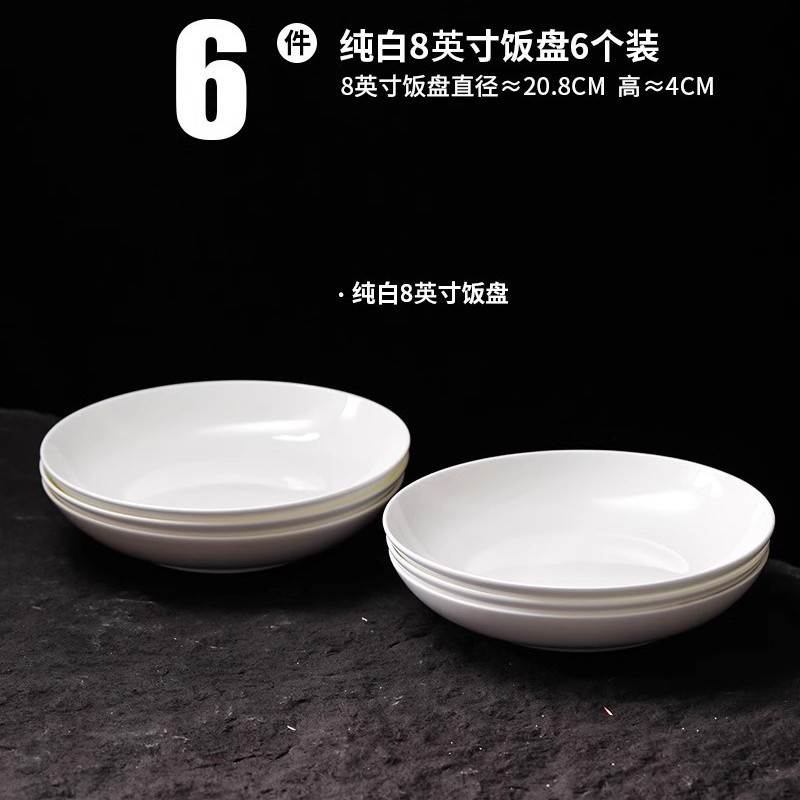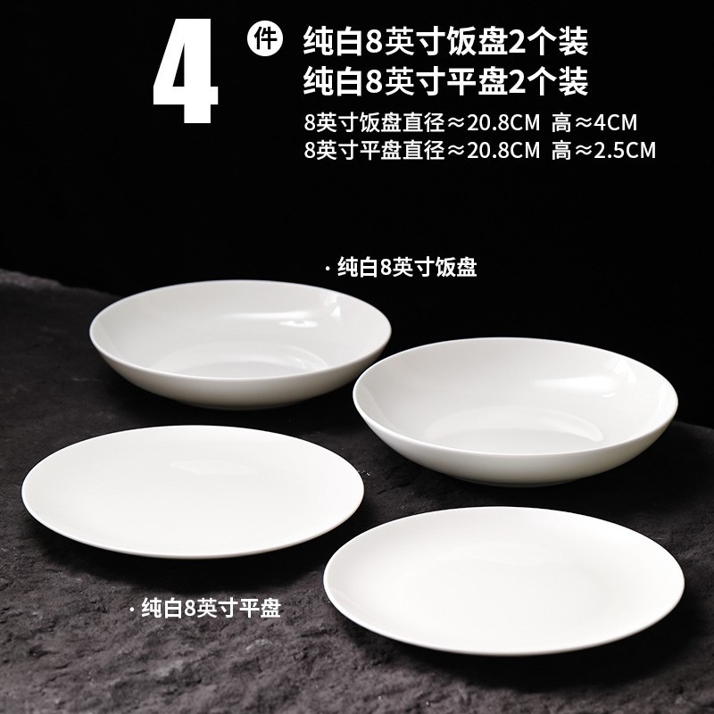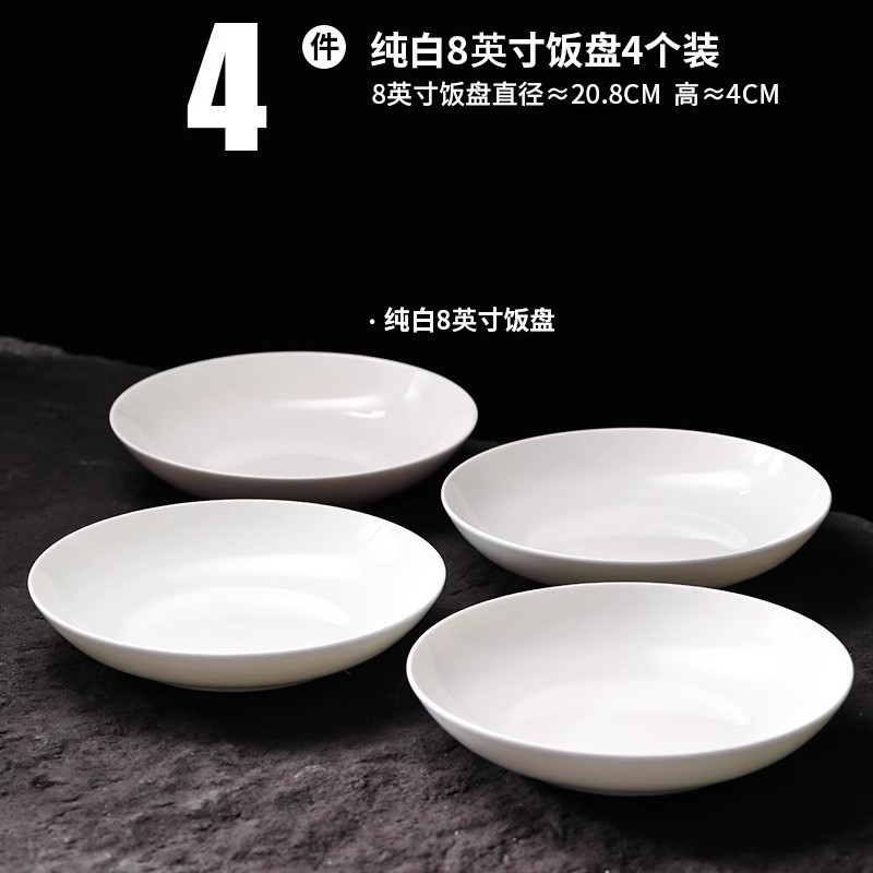 순수 화이트 플레이트 접시 가정용 2024 새로운 고온 화이트 도자기 디너 플레이트 플랫 플레이트 스테이크 플레이트 디스크 언더 유약 컬러 딥 플레이트스토어 가기