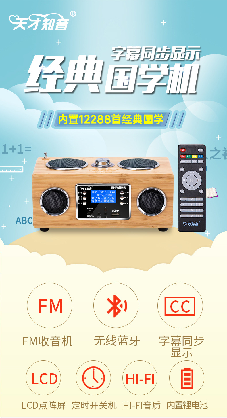 천재지음 중국어 학습기, 대나무 블루투스 스피커, 어린이 조기교육 이야기, 고전, 라디오, 스토리 머신스토어 가기
