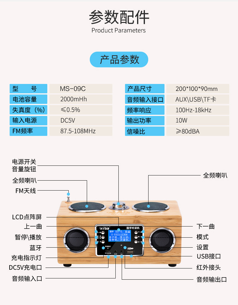 천재지음 중국어 학습기, 대나무 블루투스 스피커, 어린이 조기교육 이야기, 고전, 라디오, 스토리 머신