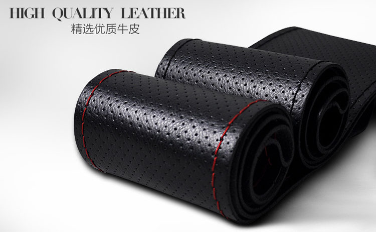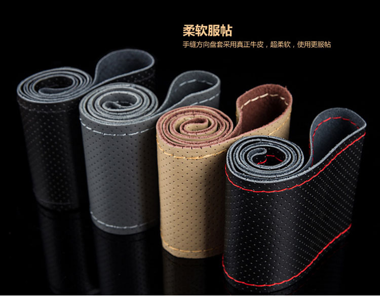제조업체 도매 천연 소가죽 손바느질 스티어링 휠 커버, 수성 가죽 레이저 천공 천연 가죽 스티어링 휠 커버, 차량용스토어 가기