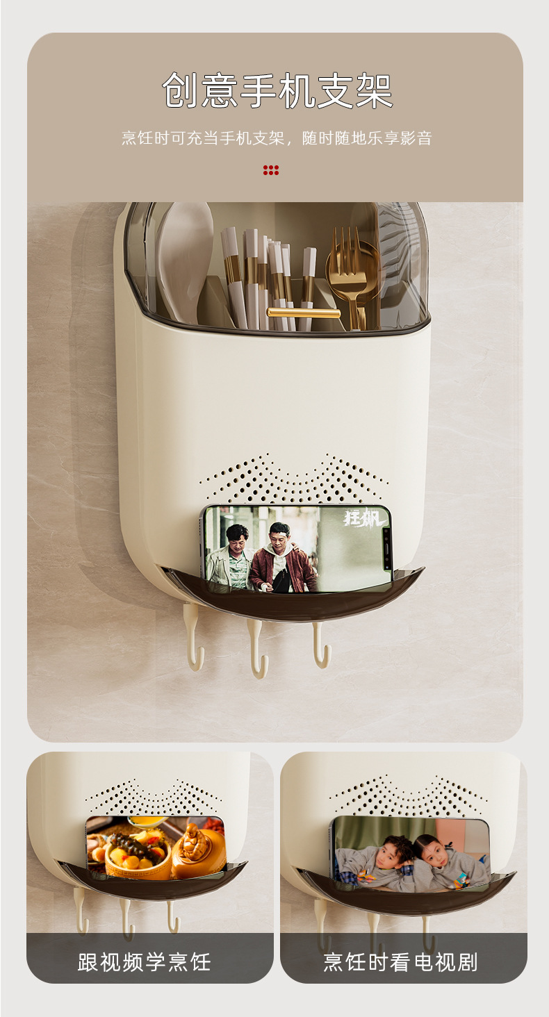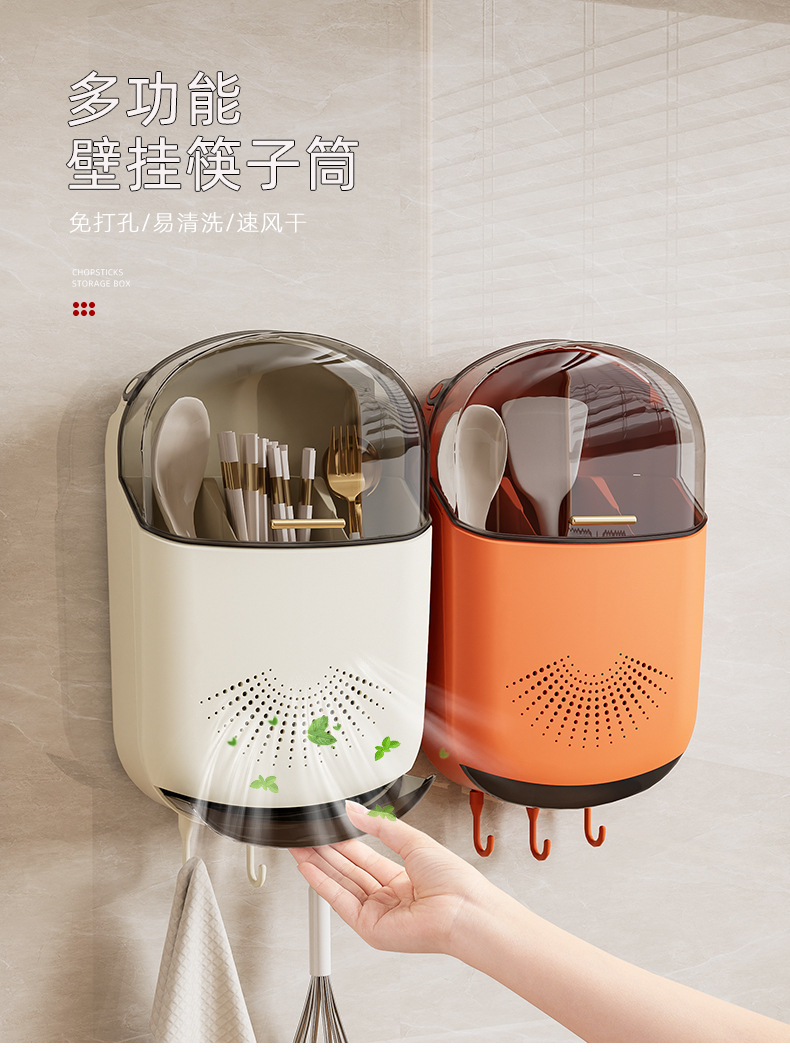 젓가락 상자 펀치 무료 저장 랙 가정용 젓가락 케이지 주방 트윗 배럴 숟가락 바구니 벽걸이 젓가락 케이지 젓가락 홀더