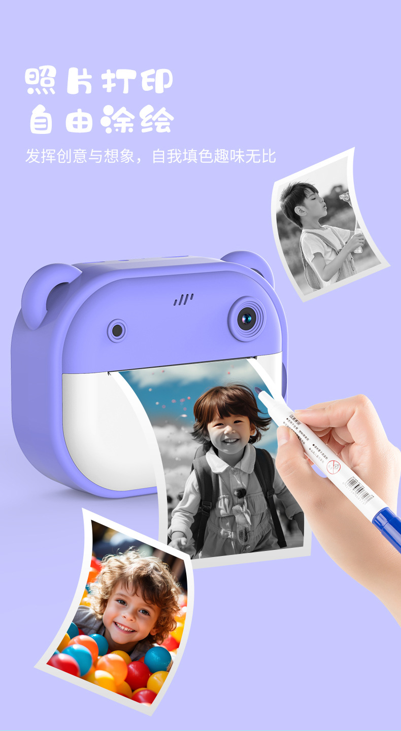 국경 간 새로운 고화질 듀얼 샷 미니 클래퍼 어린이 카메라 열 종이 인쇄 카메라 디지털 카메라스토어 가기
