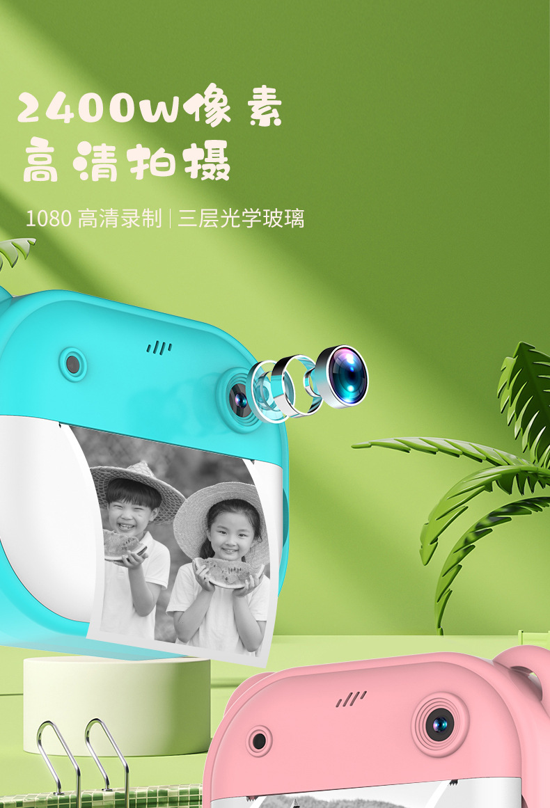 국경 간 새로운 고화질 듀얼 샷 미니 클래퍼 어린이 카메라 열 종이 인쇄 카메라 디지털 카메라
