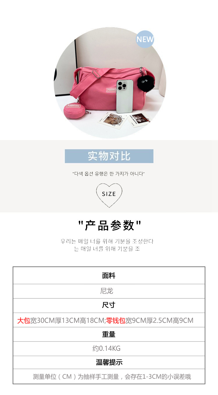 2024 새로운 스타일의 크로스 바디 백 학생 클래스 가방 여성용 ins 스타일 일본식 대용량 솔리드 컬러 더블 백 숄더백