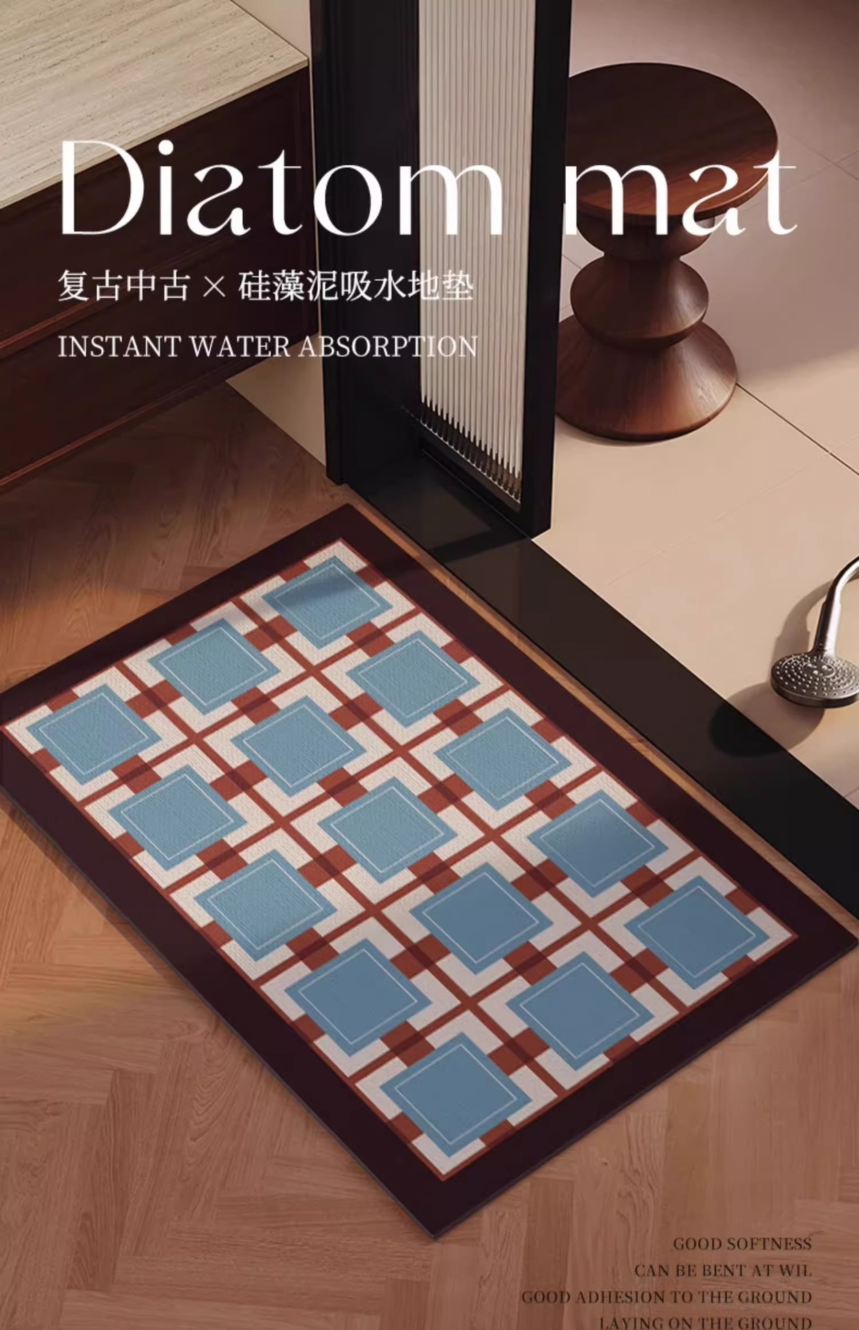 복고풍 욕실 바닥 매트 화장실 문 Diatom 진흙 흡수성 빠른 건조 발 매트 화장실 안티-슬립 방지 더러운 카펫스토어 가기