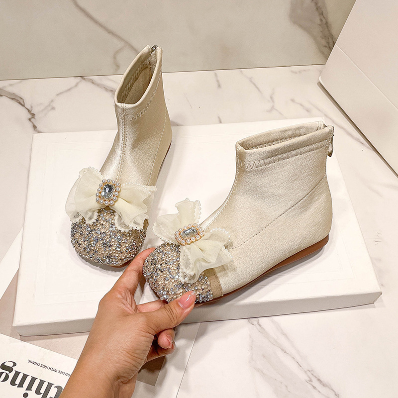 여아 부츠 어린이 공주 크리스탈 숏부츠 2025 신상 아기 가죽 부츠 겨울용 플러스 벨벳 패션 마틴 코튼 부츠