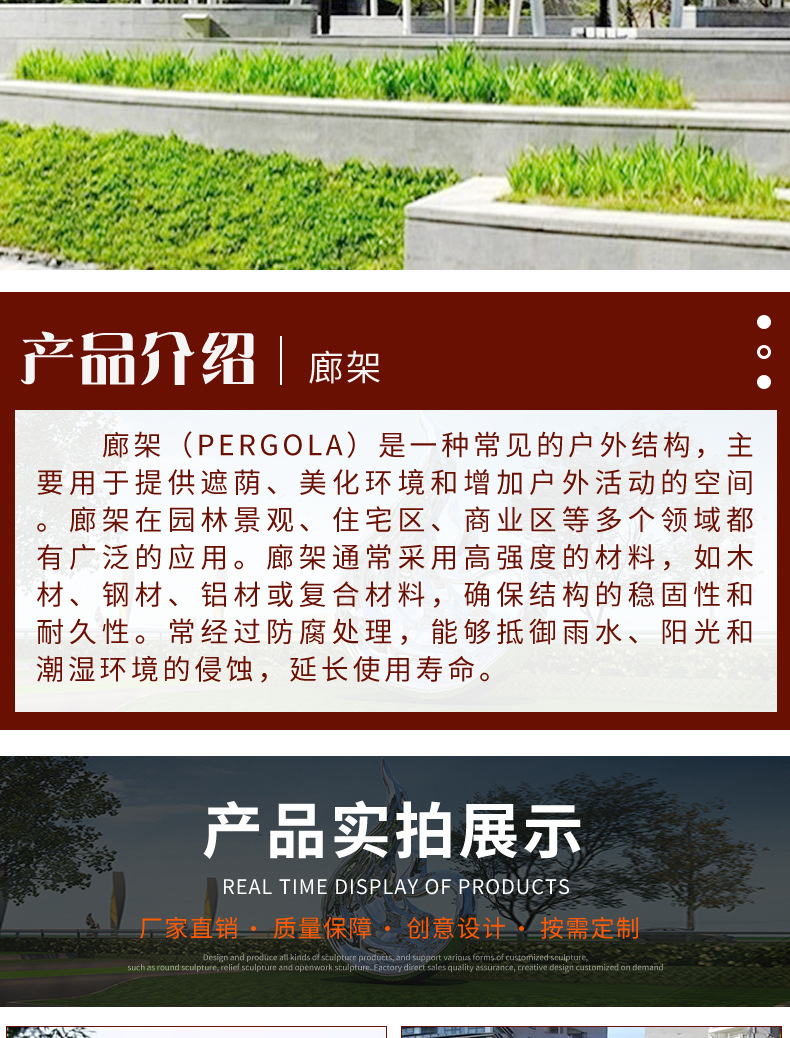 공장 직접 공급 스테인리스 갤러리 야외 대형 강철 구조 복도 금속 공원 광장 풍경 갤러리 파빌리온