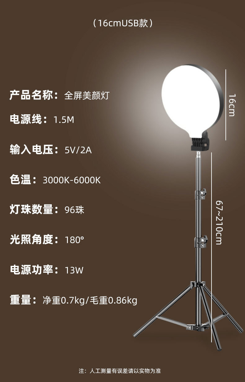 • [전체 화면 뷰티 램프] (미니 데스크탑 삼각대 + 16cm 전체 화면 뷰티 램프)