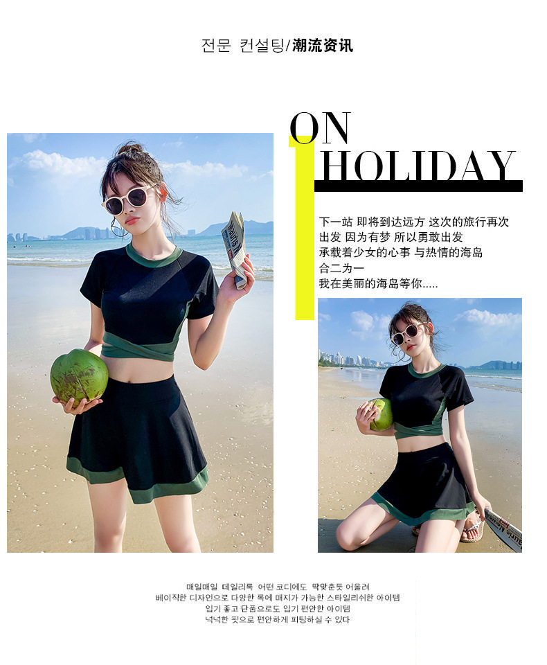 2024 새로운 수영복 여성 스플릿 섹시 스커트 스타일 작은 가슴 푸시 업 한국 인 신선한 학생 슬리밍 요정 스타일