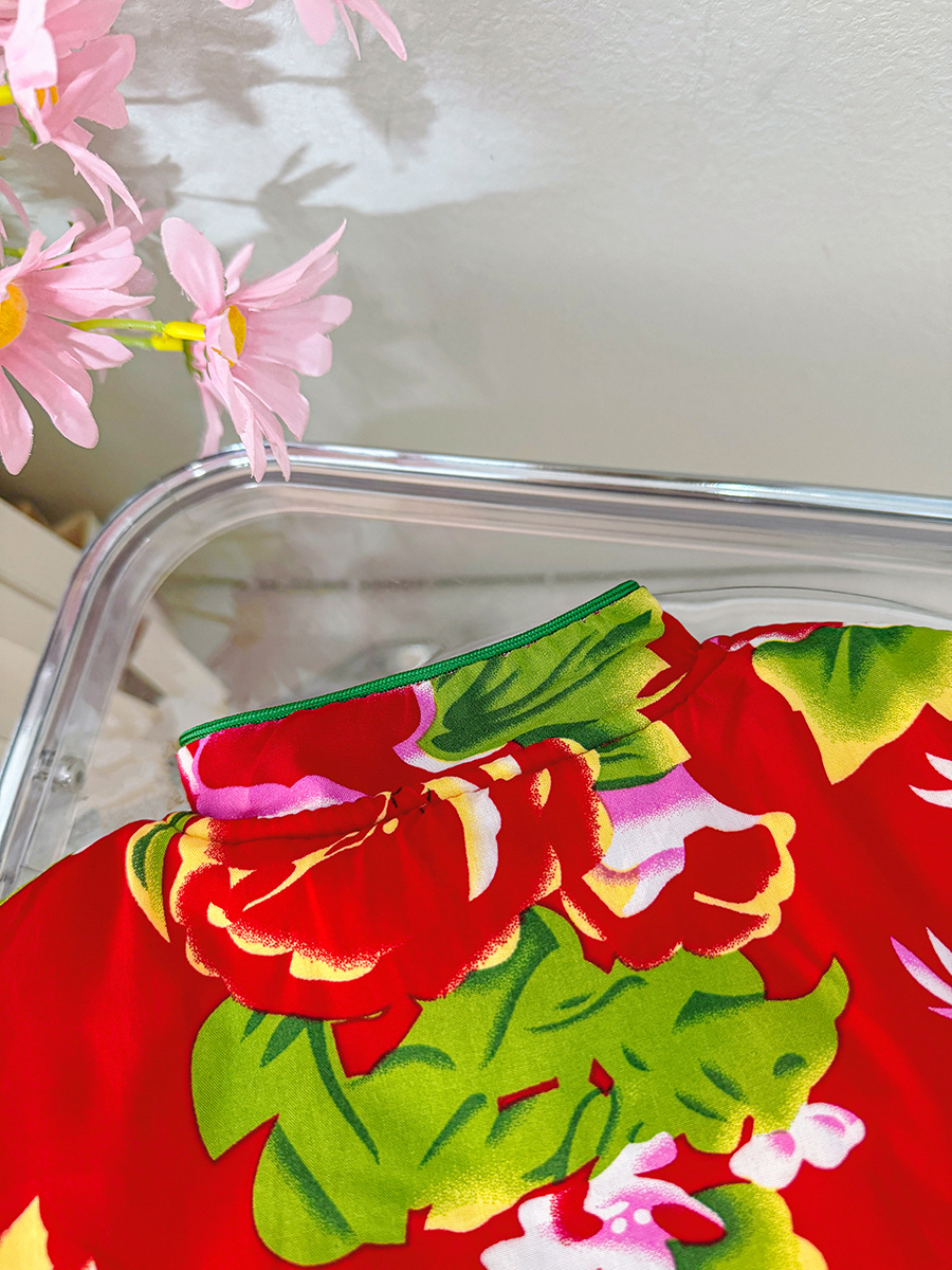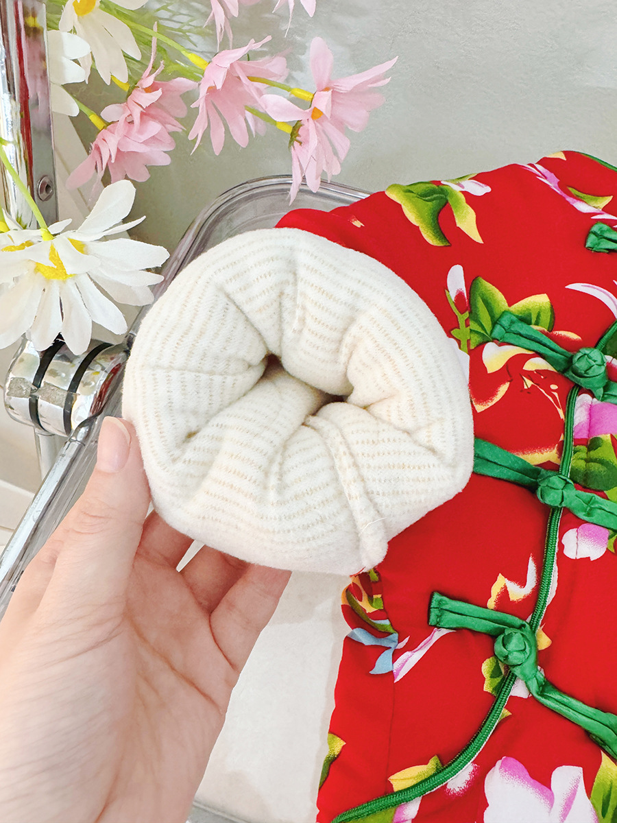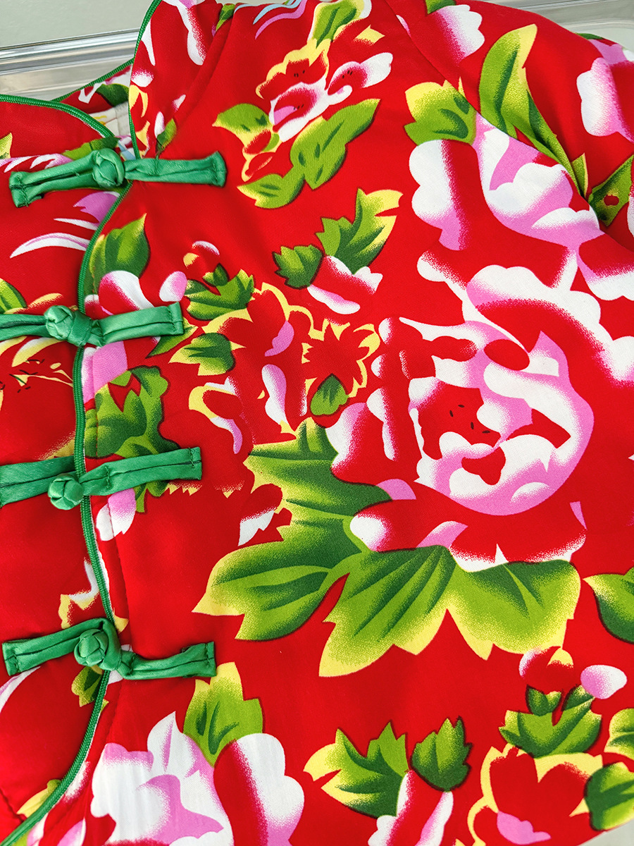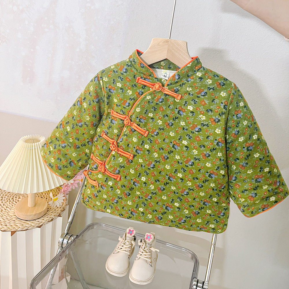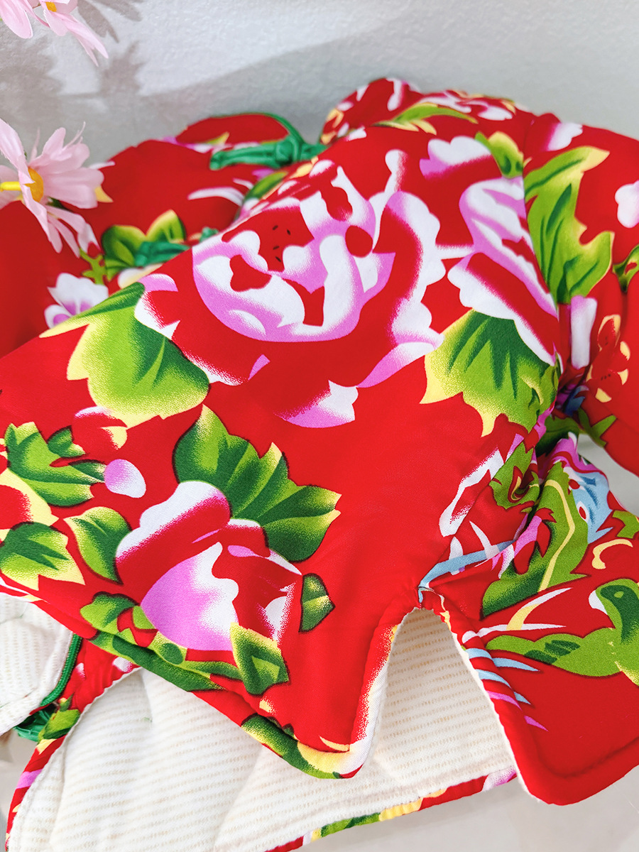소녀 기모 두꺼운 코트 동북 꽃 장식 코트 아기 소녀 빈티지 코튼 패딩 코트 사이버 레드 탑 윈터 코트