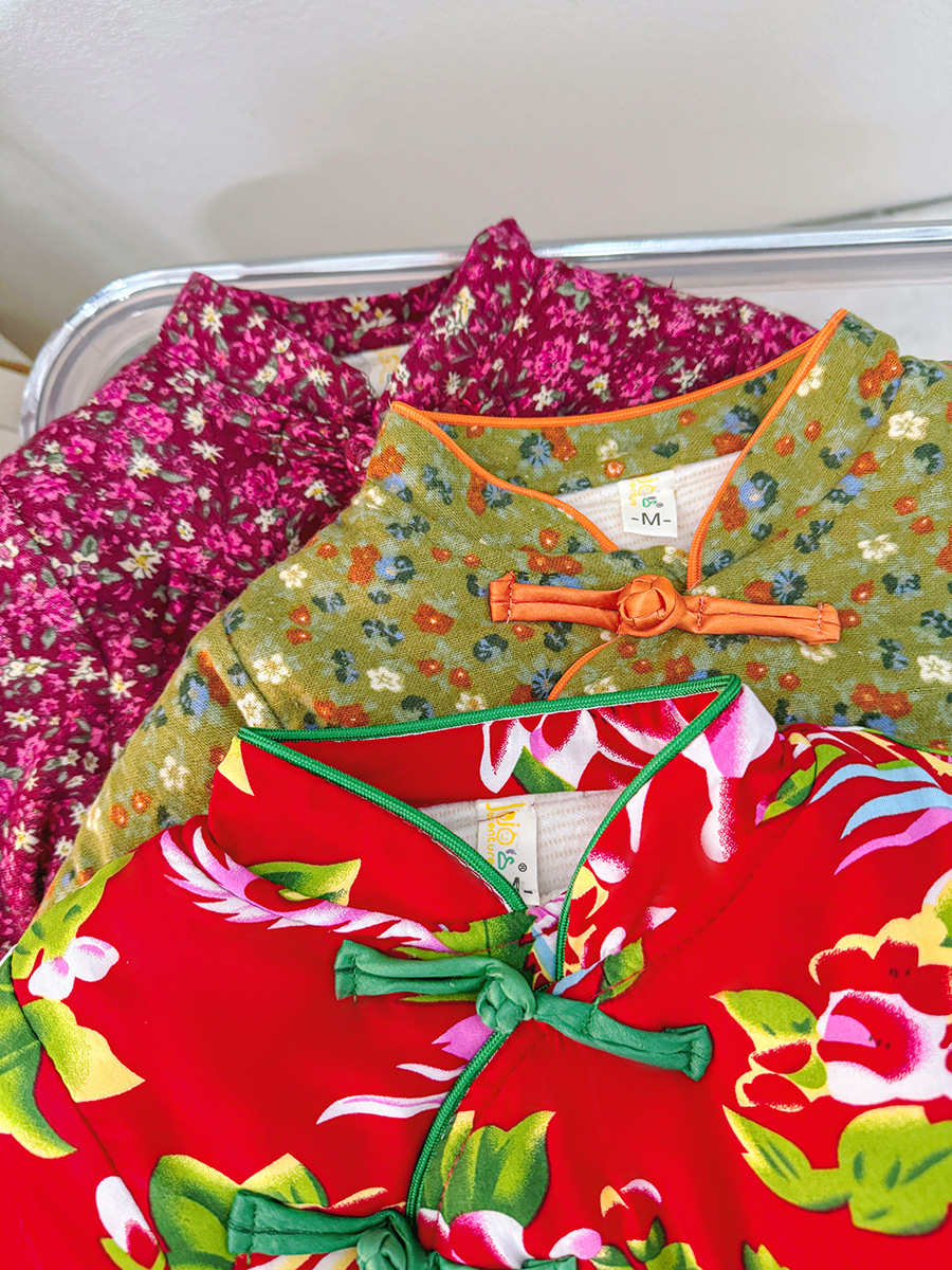 소녀 기모 두꺼운 코트 동북 꽃 장식 코트 아기 소녀 빈티지 코튼 패딩 코트 사이버 레드 탑 윈터 코트스토어 가기