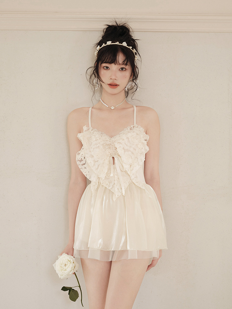 하이 엔드 틈새 활 그물 레드 보수적 인 배꼽 슬림 2024 새로운 순수한 욕망 수영복 여성의 여름 온천