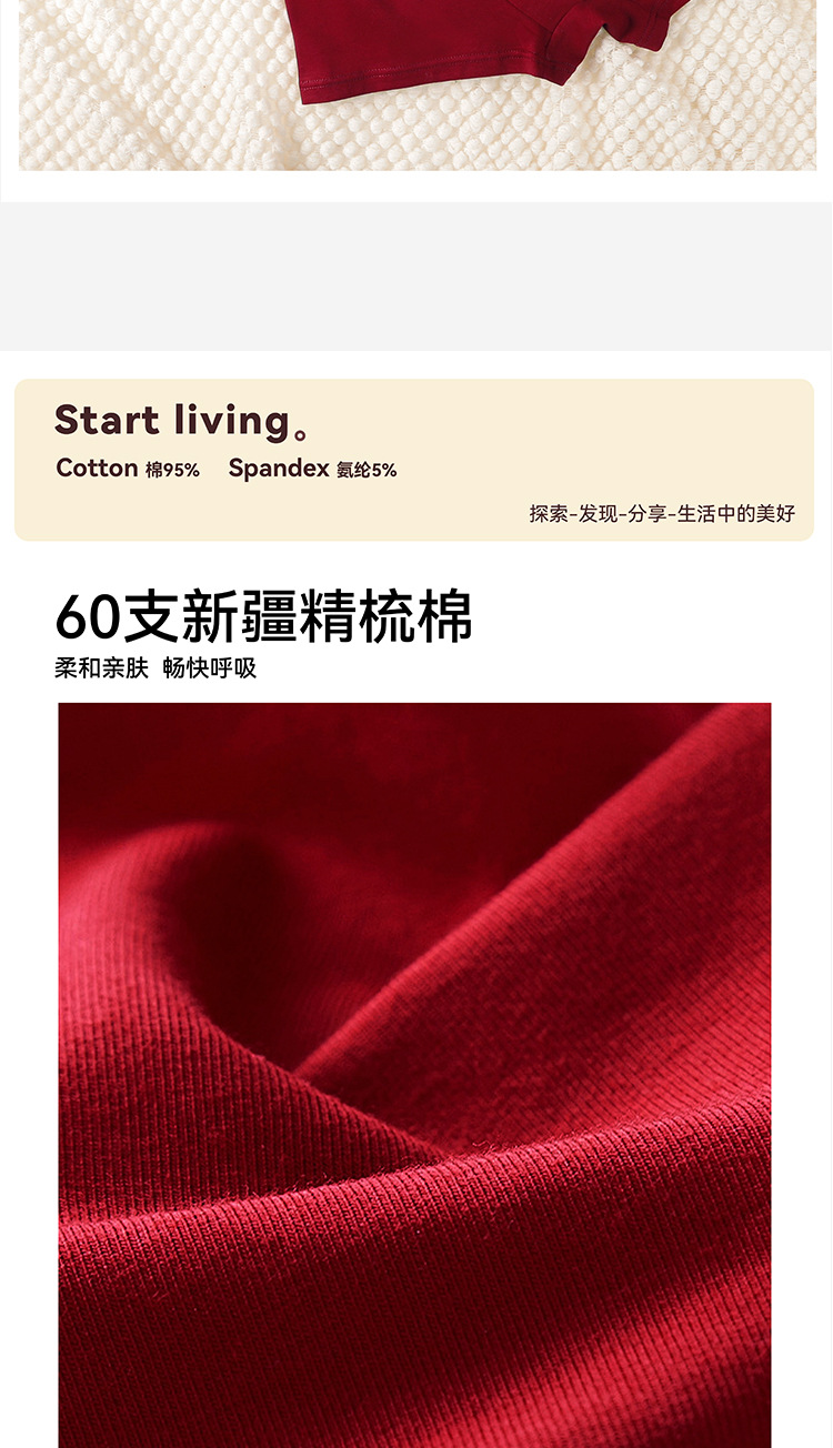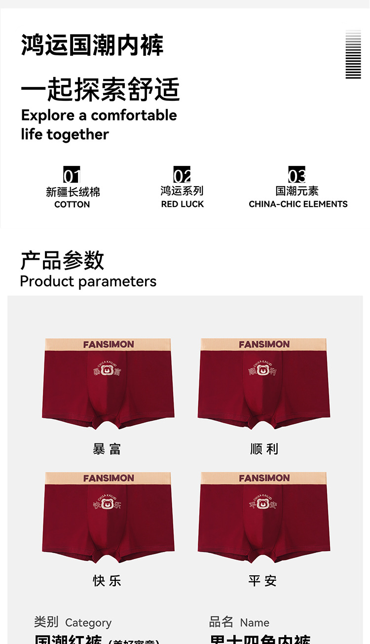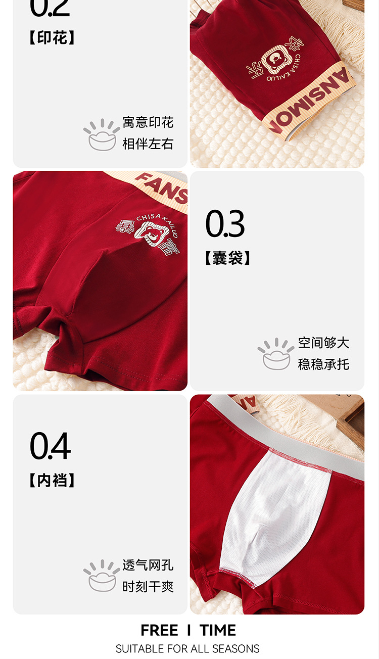 남성용 브닝 니언 레드 속옷 퓨어 코튼 항균 소프트 편안한 통기성 기쁨 중환자 복서