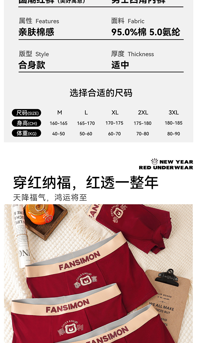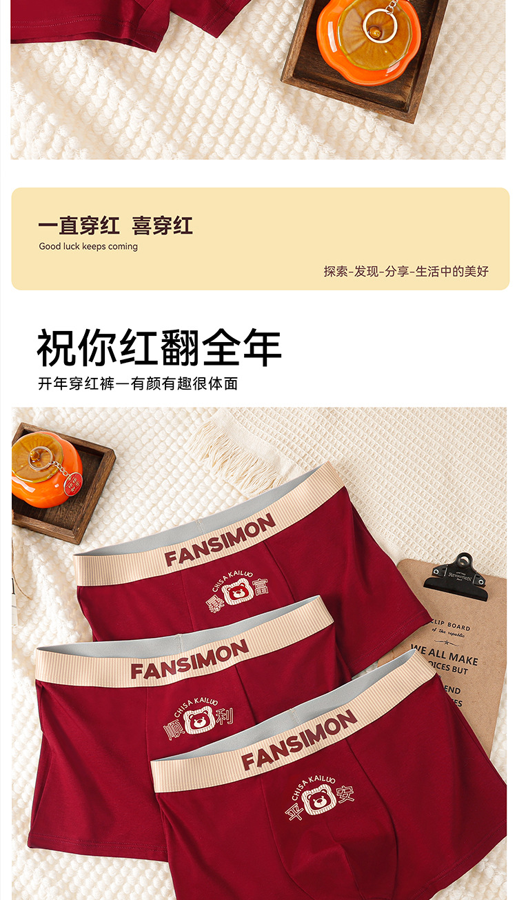 남성용 브닝 니언 레드 속옷 퓨어 코튼 항균 소프트 편안한 통기성 기쁨 중환자 복서스토어 가기