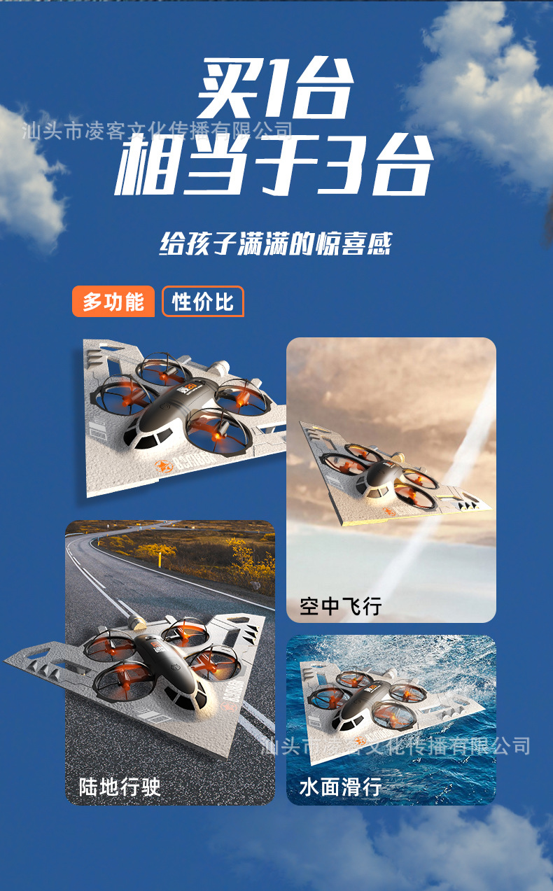 국경 간 전용 물, 육지 및 공기 3 대 1 무인 항공기 원격 제어 항공기 항공 사진 어린이 소년 장난감 전기 수륙 양용스토어 가기