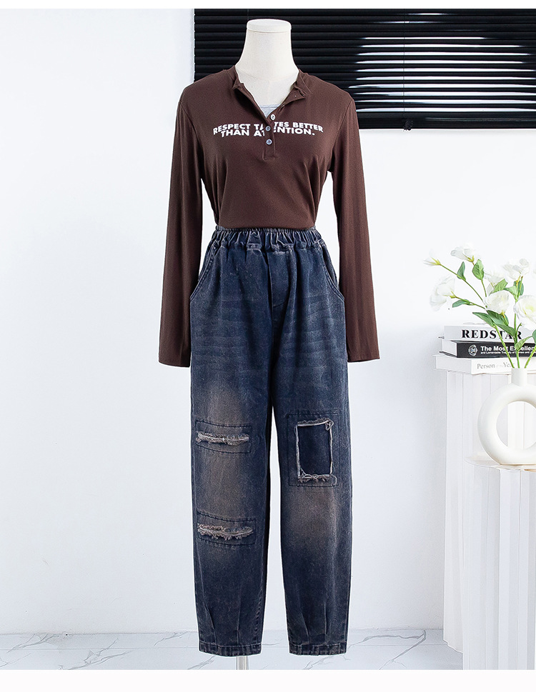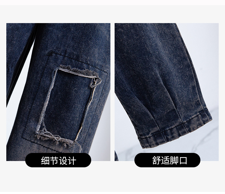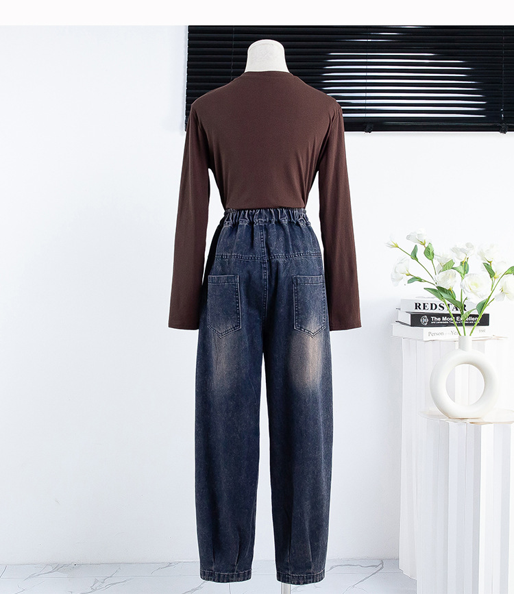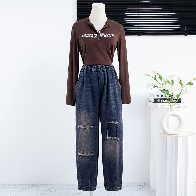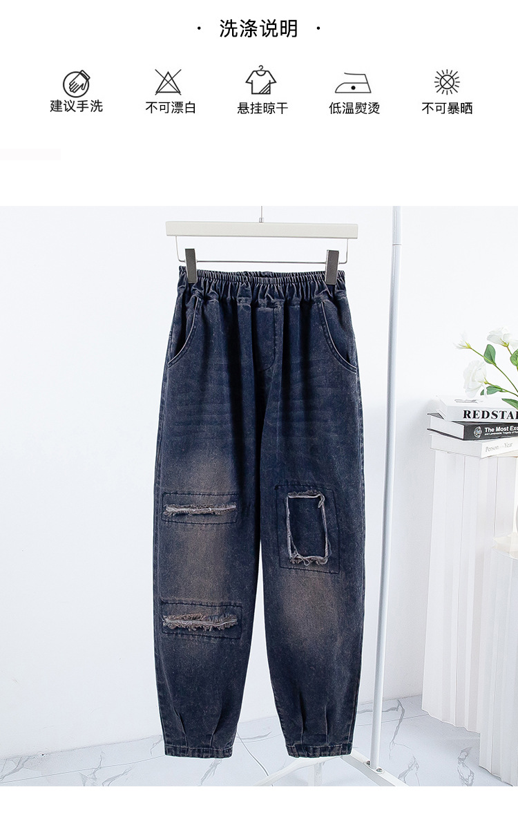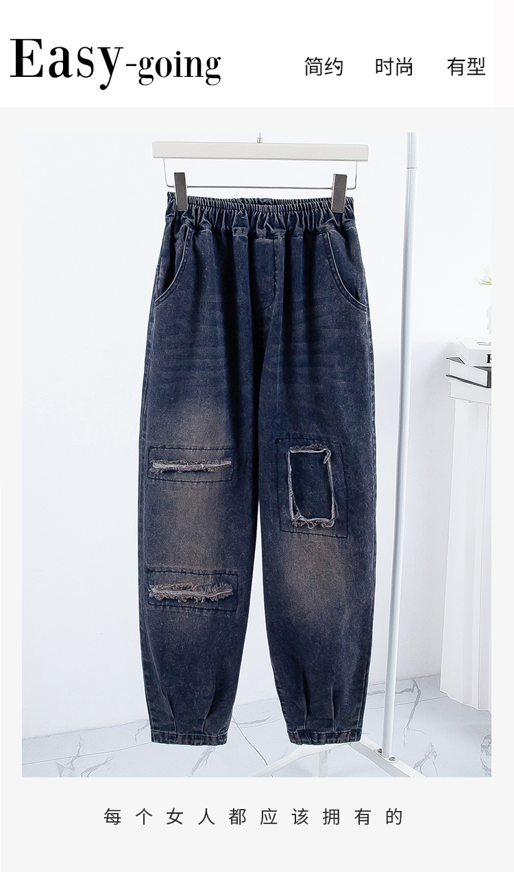 리얼 샷 데님 여성 9 점 느슨한 플러스 사이즈 슬림 할란 팬츠 2024 가을과 겨울 새로운 캐주얼 아트 토르 팬츠 여성스토어 가기