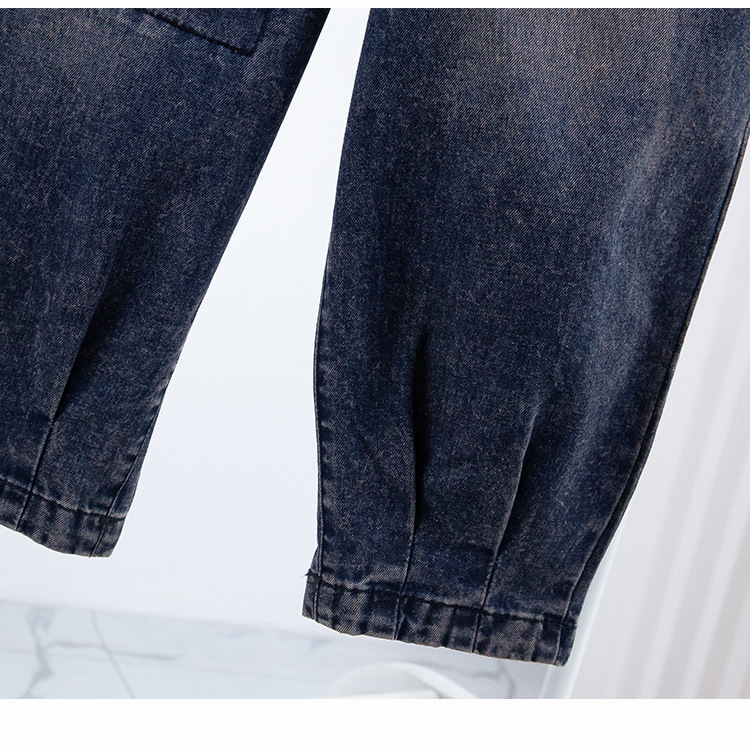 리얼 샷 데님 여성 9 점 느슨한 플러스 사이즈 슬림 할란 팬츠 2024 가을과 겨울 새로운 캐주얼 아트 토르 팬츠 여성