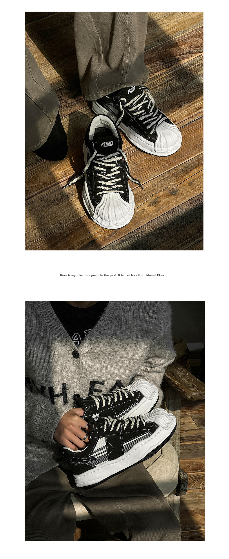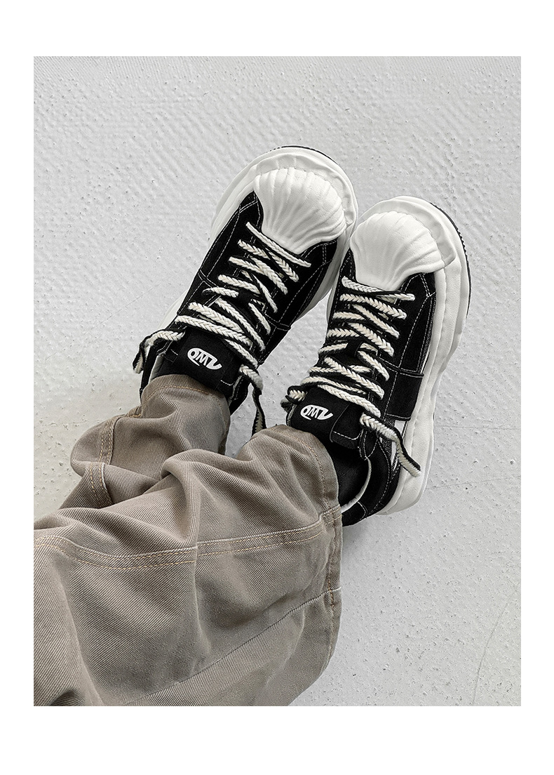 니치 디자인 한국 스타일 올매치 용해 신발 쉘 헤드 두꺼운 단독 증가 유행 캐주얼 신발 남성 스티칭 스타일 스니커즈