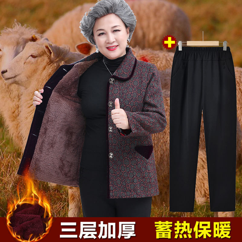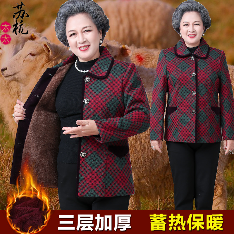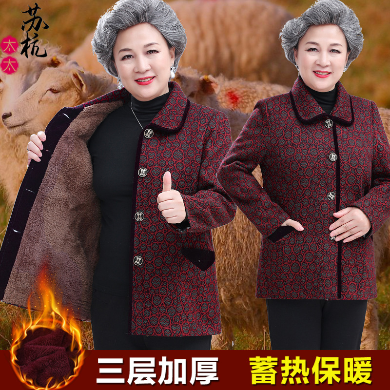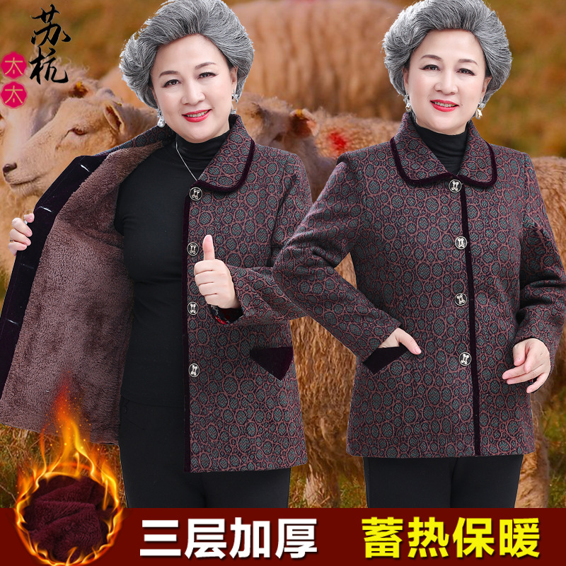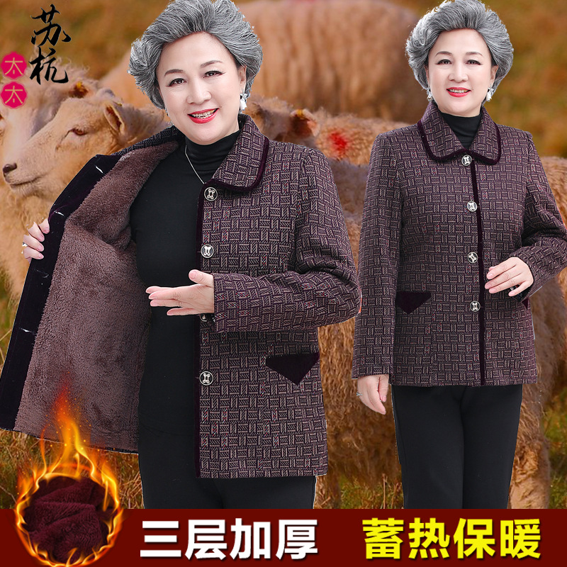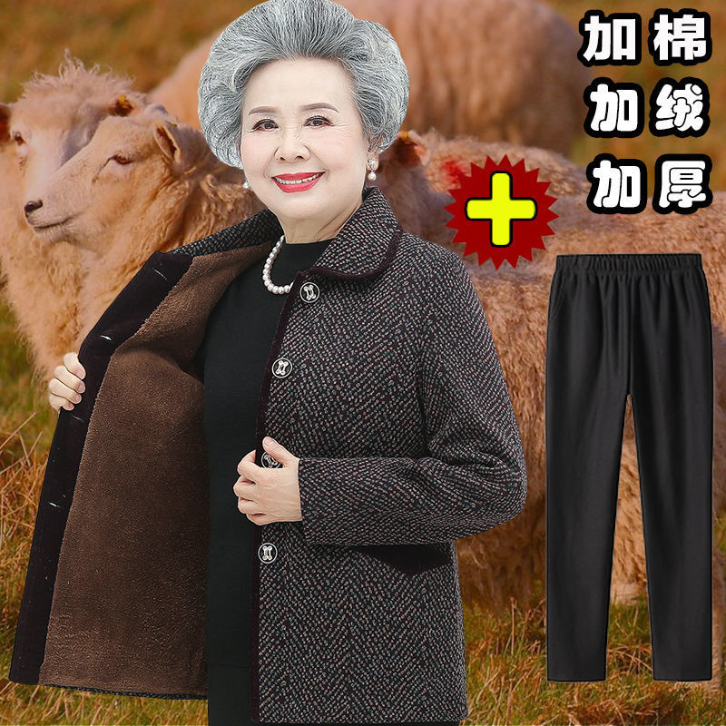 중년 및 노인 여성 면화 패딩 의류 60-70-80 세 노인을위한 겨울 옷 어머니 가을 코트 두꺼운 할머니면 패딩 재킷