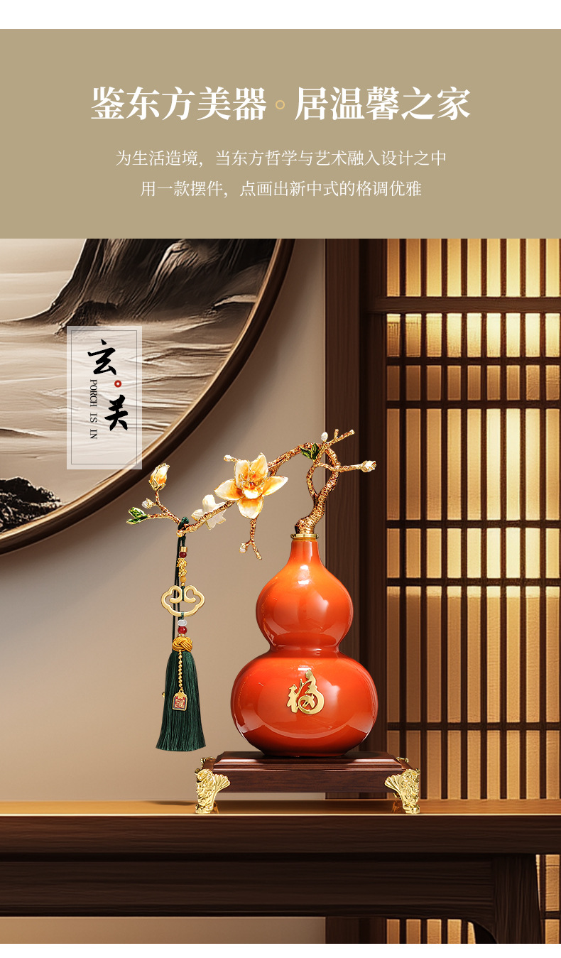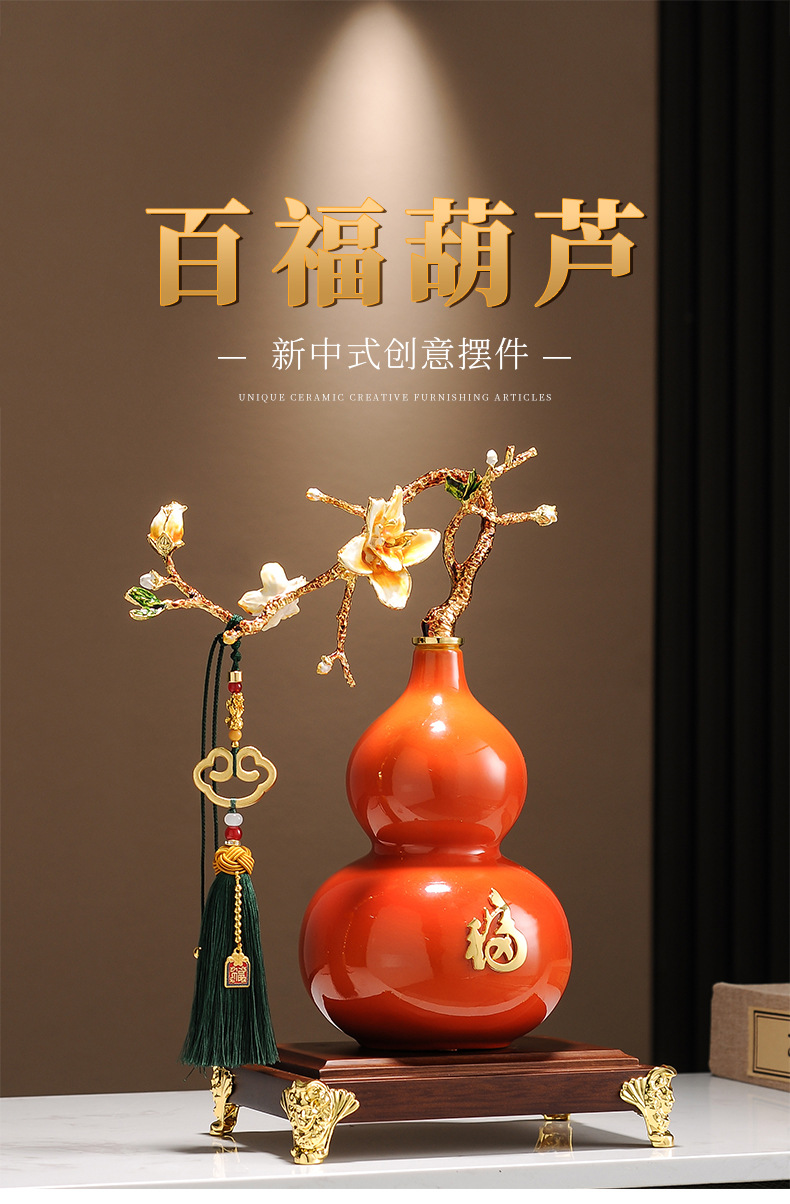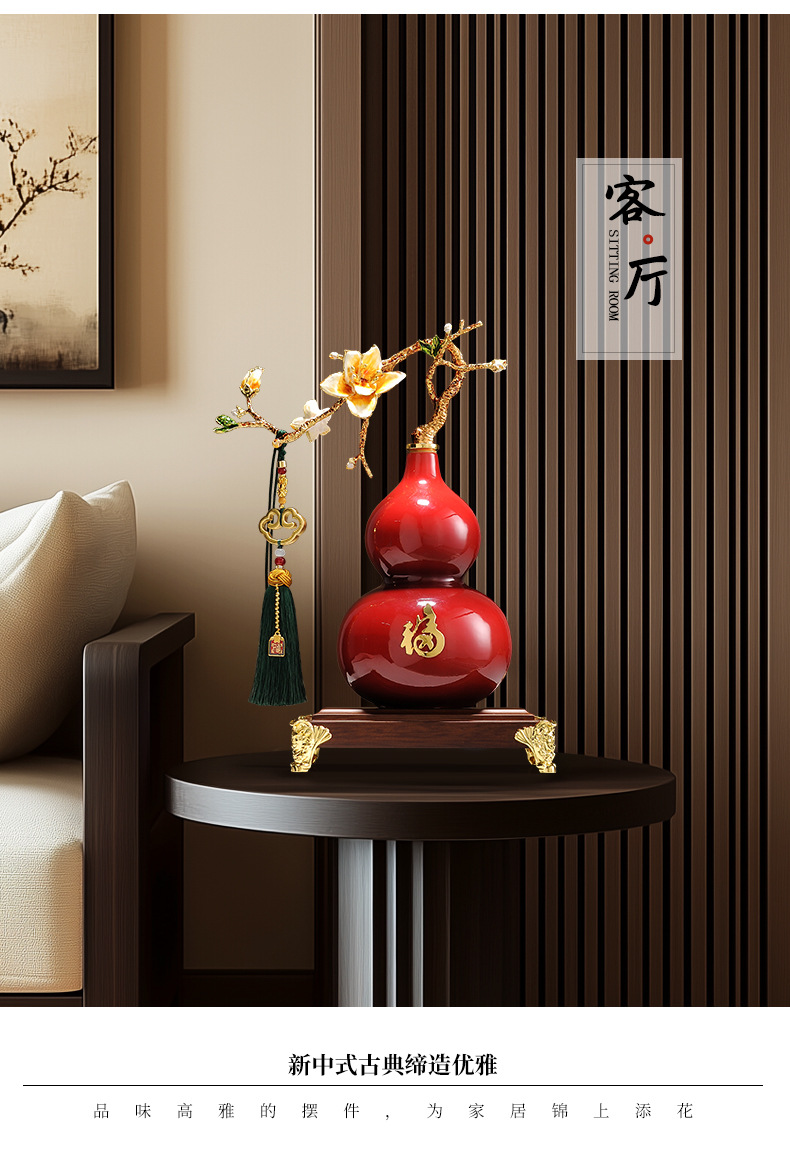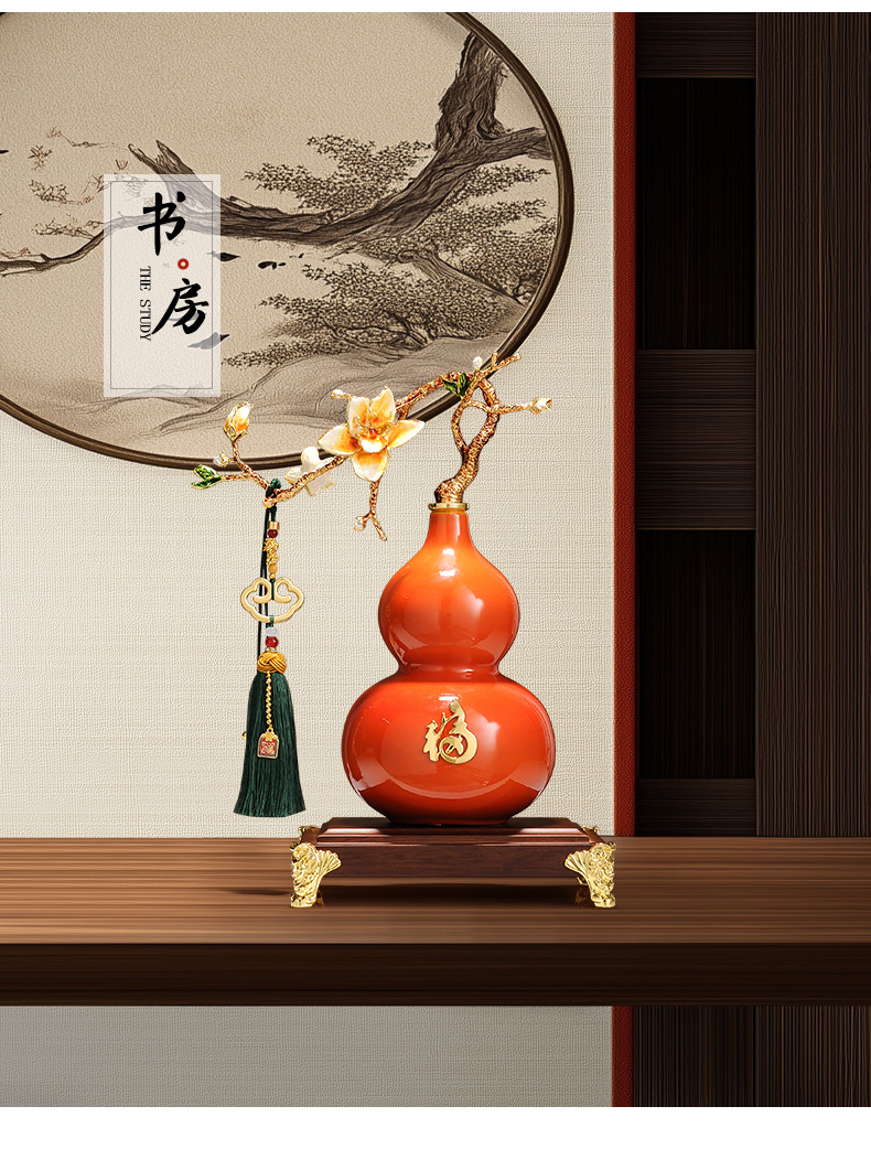 목련 꽃 조롱박 장식품 하이 엔드 새로운 중국 거실 현관 골동품 선반 장식 사무실 집들이 새 집 선물