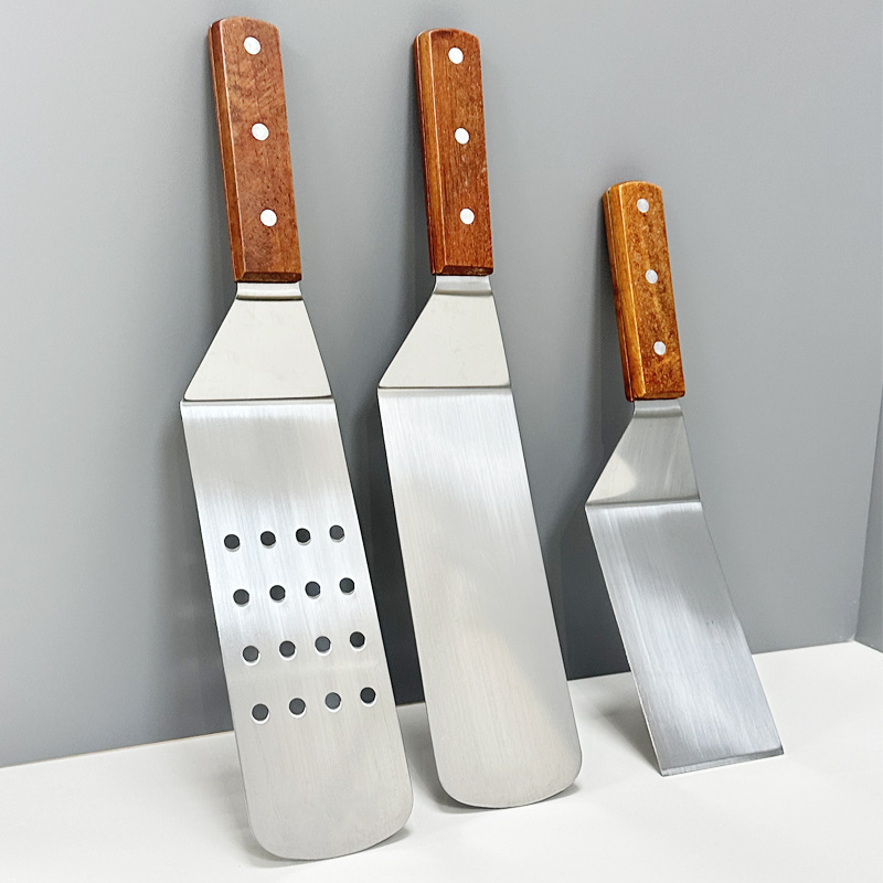 나무 손잡이 피자 커터 요리 삽 튀김 삽 스테인리스 스틸 주방 피자 요리 삽 철판