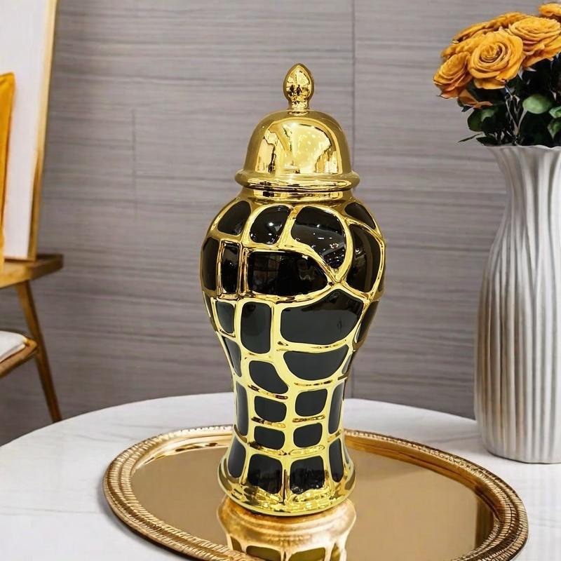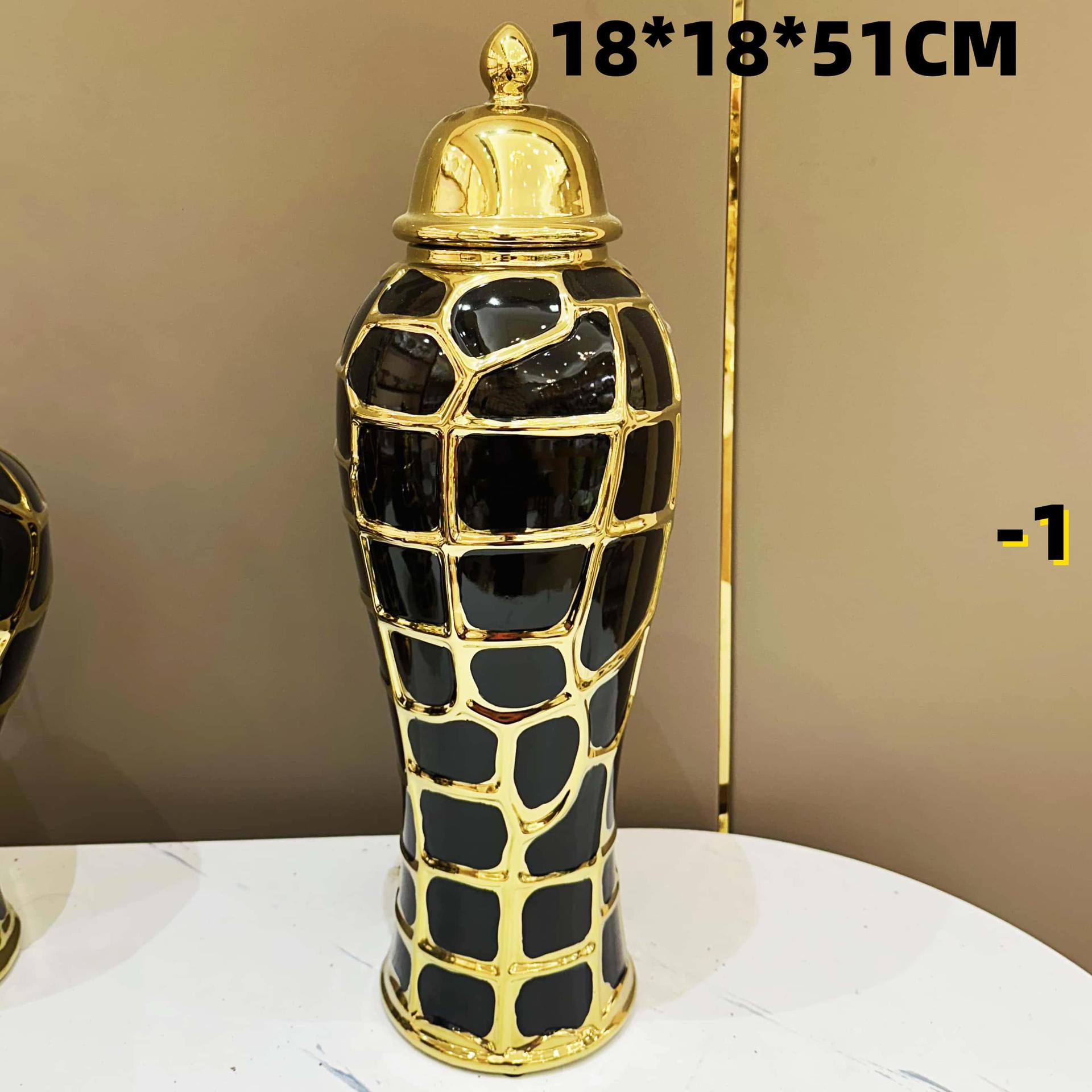 세라믹 라이트 럭셔리 전기 도금 일반 항아리 유럽 꽃 꽃병 공예 장식품 복도 부드러운 장식 저장 항아리