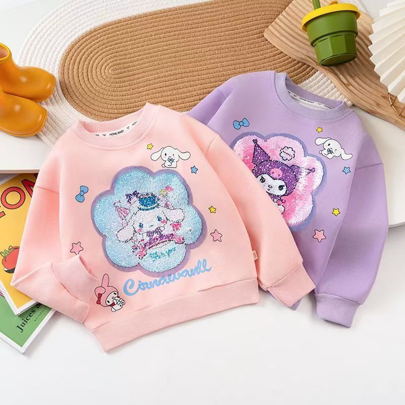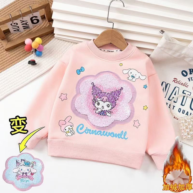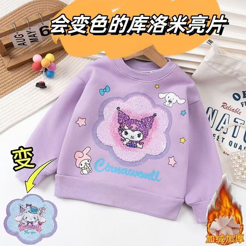 색상 변경 Sequin Kulomi Yugui 개 소녀 아기 기모 운동복 가을과 겨울 새로운 만화 옷스토어 가기