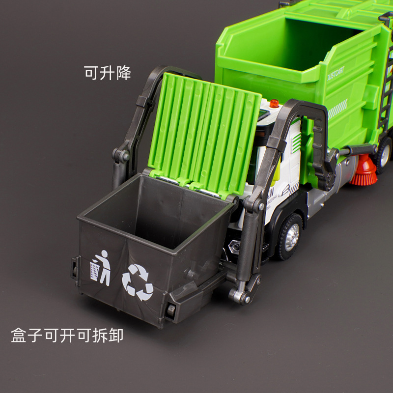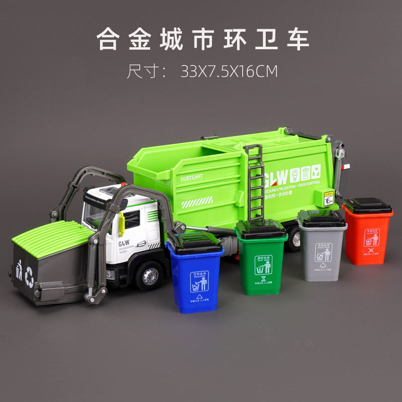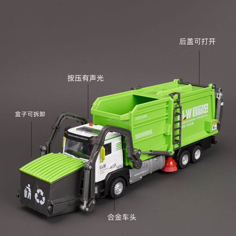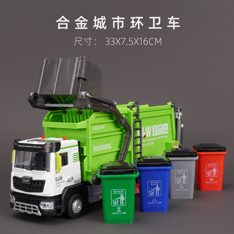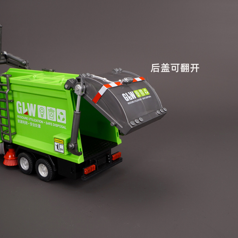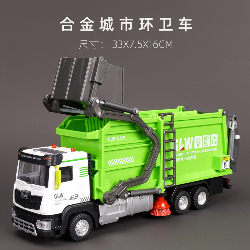 강철 Liwei 대형 합금 쓰레기 트럭 청소 도시 위생 트럭 스프레이 스프링클러 엔지니어링 장난감 소년 소녀스토어 가기