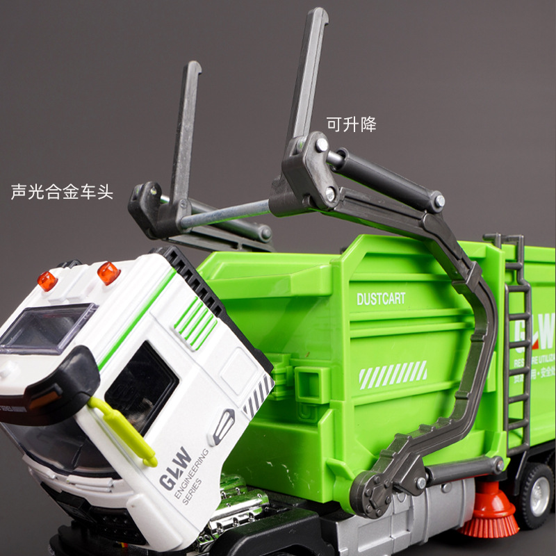 강철 Liwei 대형 합금 쓰레기 트럭 청소 도시 위생 트럭 스프레이 스프링클러 엔지니어링 장난감 소년 소녀