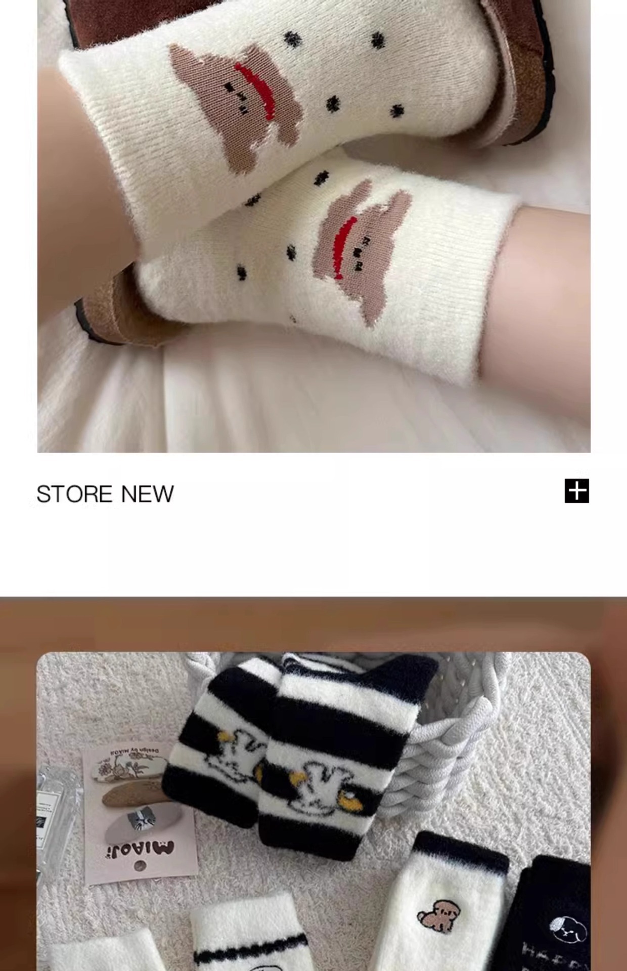 흑백 이중 자수 강아지 ~ 겨울 인기 벨벳 두꺼운 달콤한 인 스타일 양말 가을 겨울 여성 호주 벨벳 미드 튜브스토어 가기