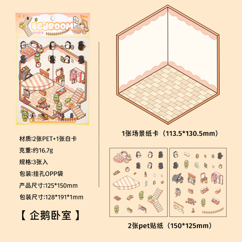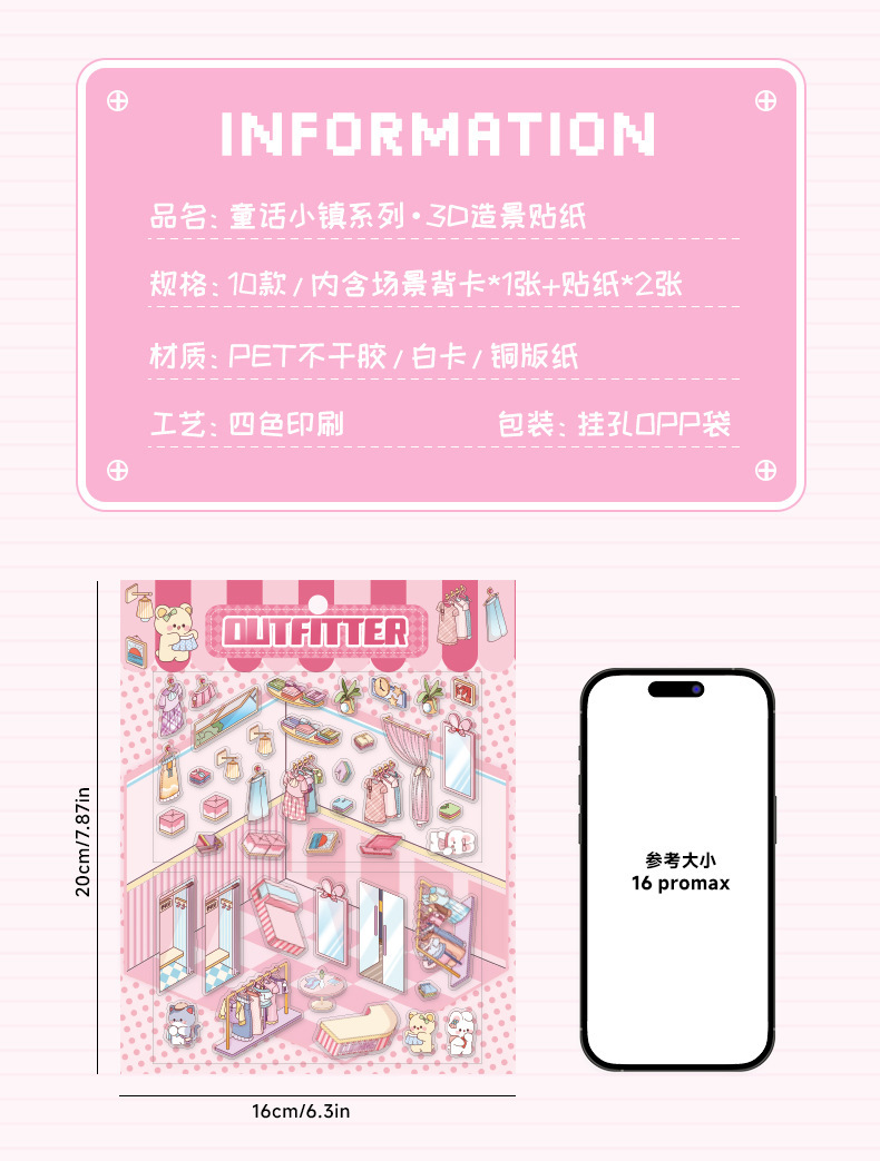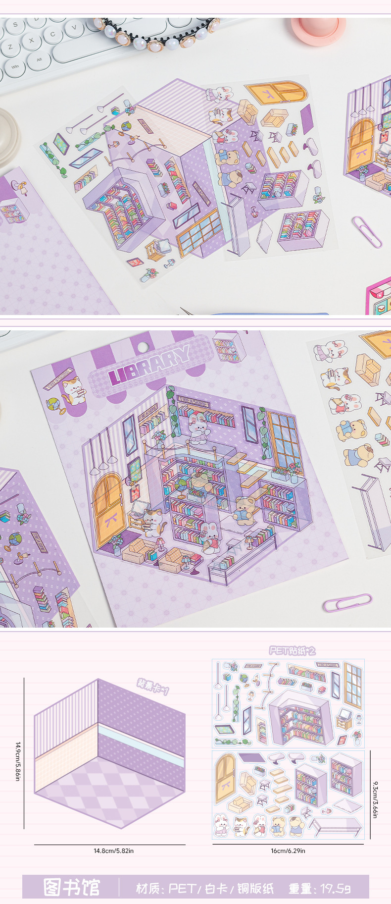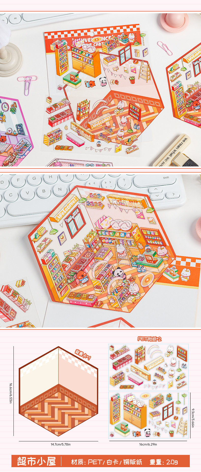[귀여운 동화] 풍경 집 3D 풍경 스티커 국경 손 계정 스티커 마이크로 스케일 장면 스티커스토어 가기