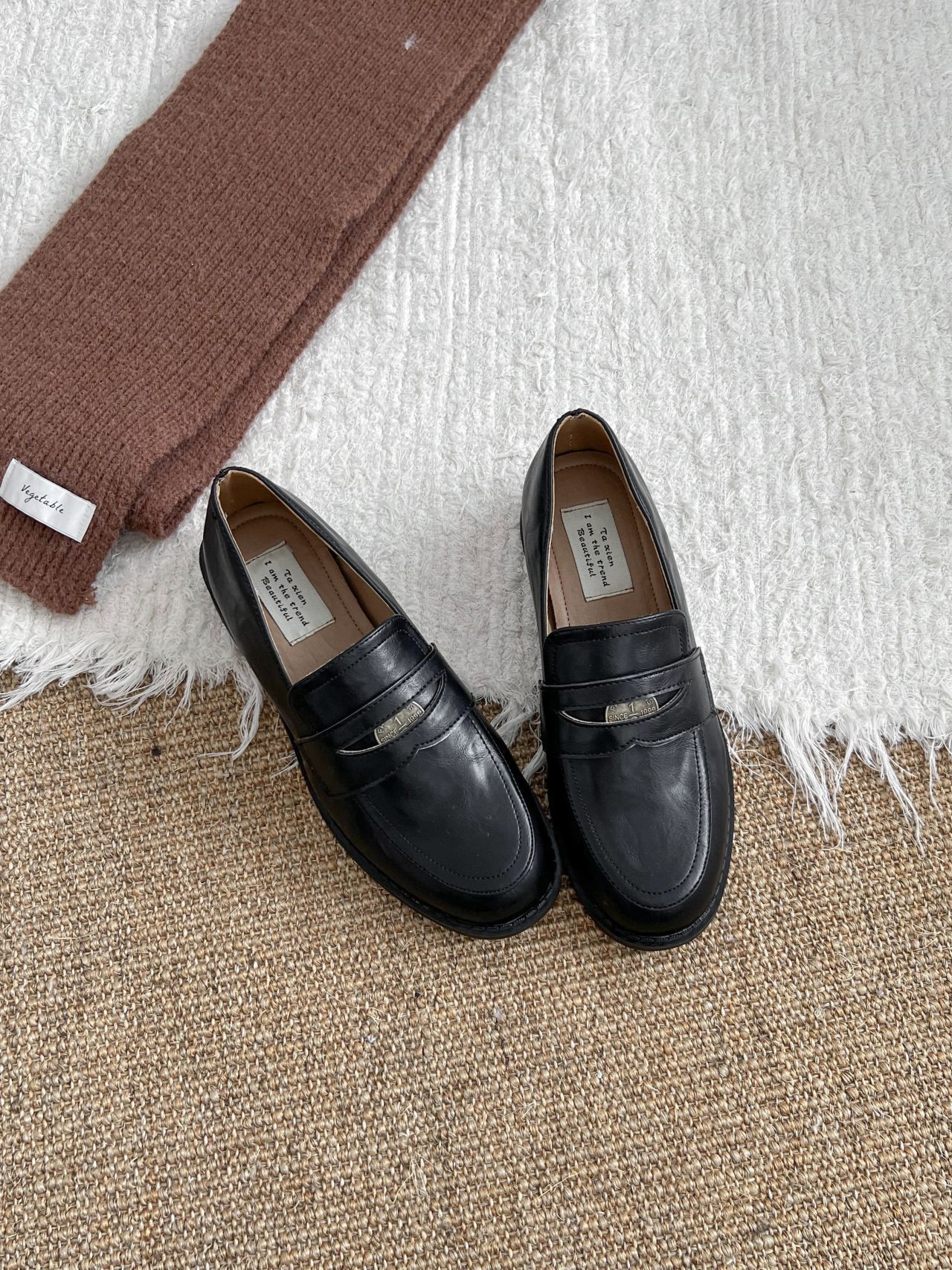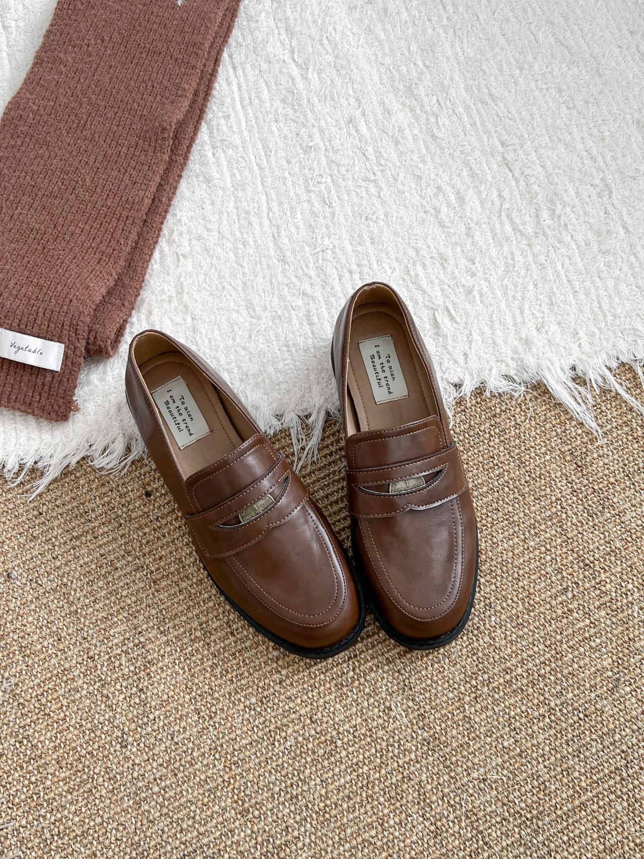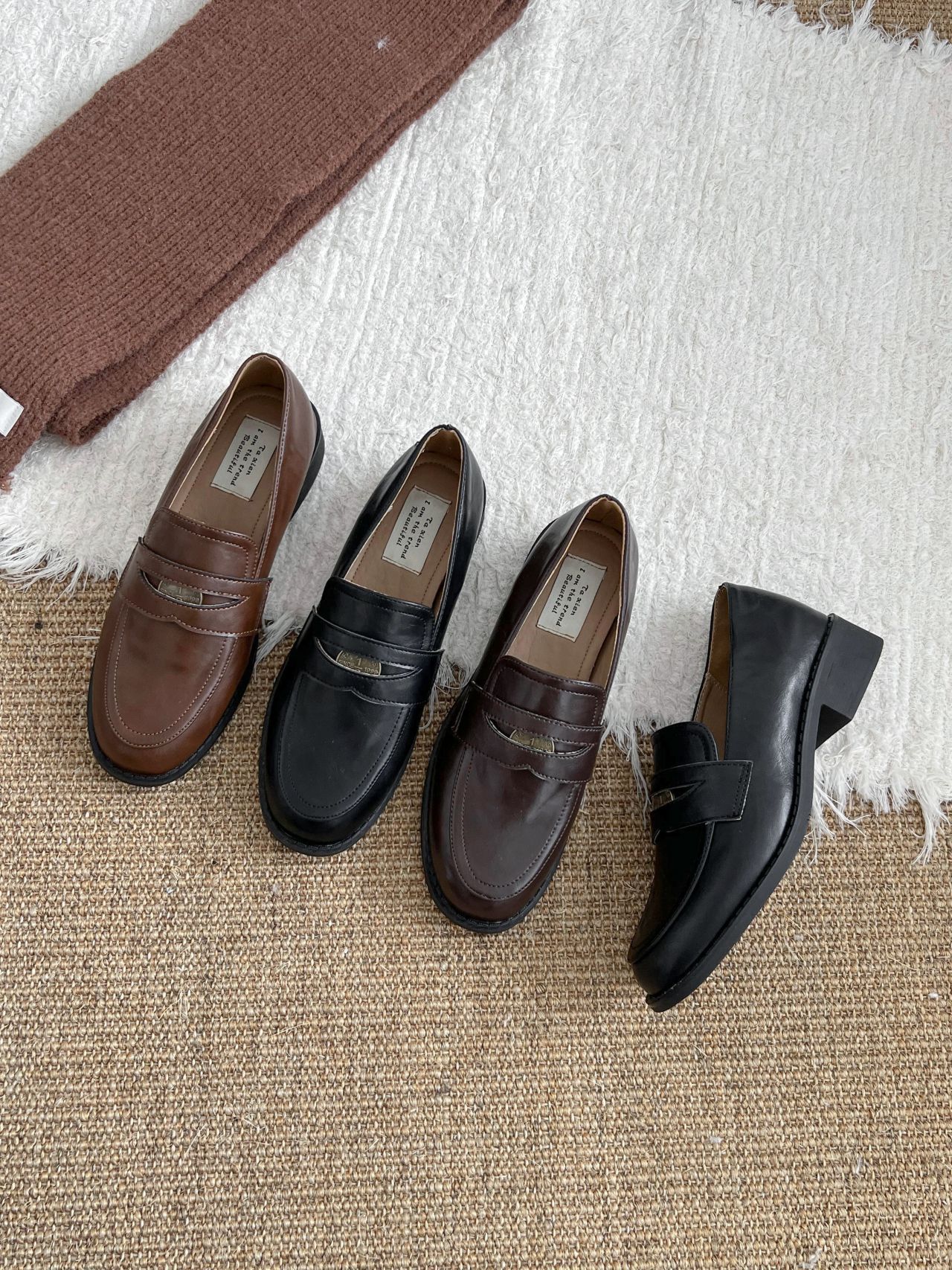 빈티지 다크 브라운 로퍼 여성용 봄 및 가을 콩 신발 슬립 온 블랙 싱글 레이어 신발 두꺼운 힐 여성 신발 영국 가죽 신발스토어 가기