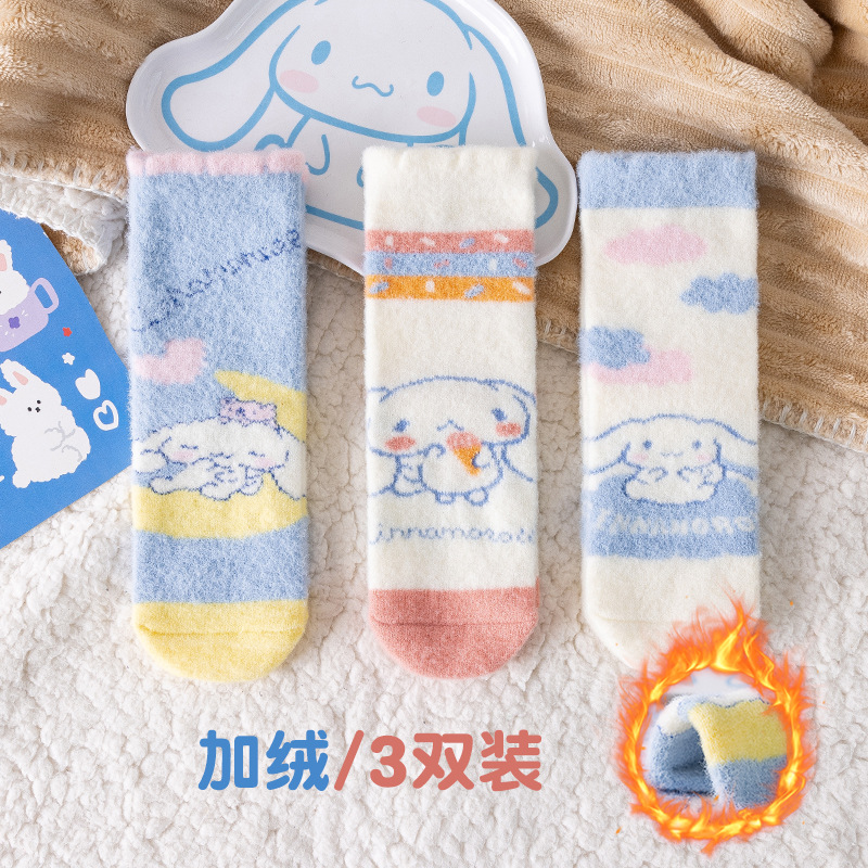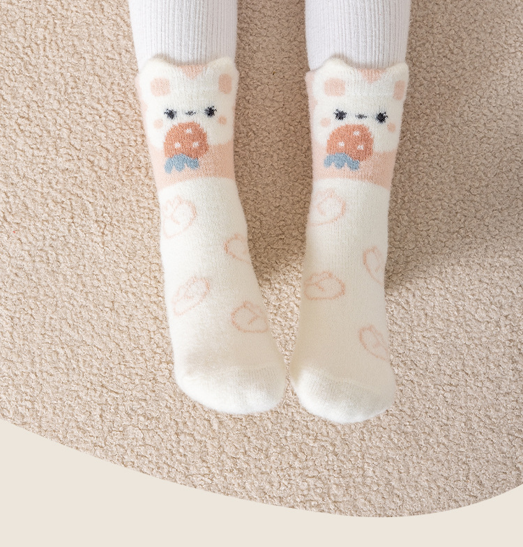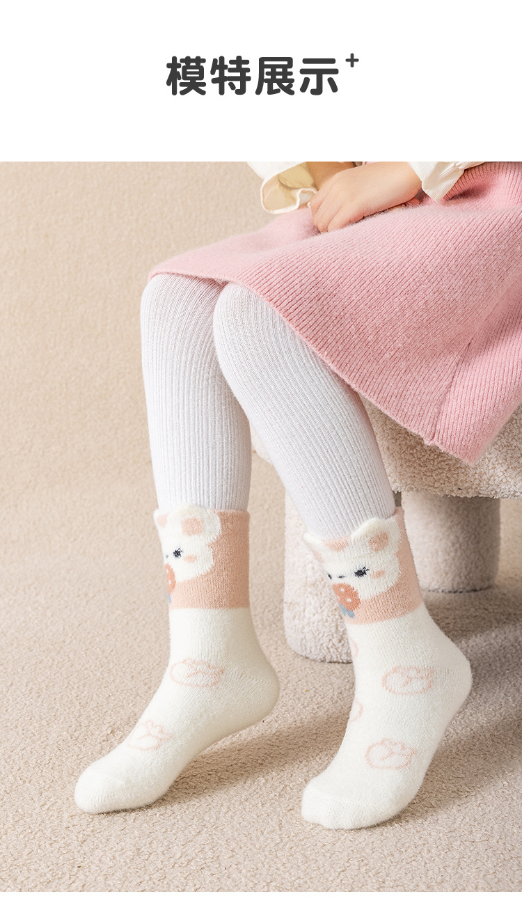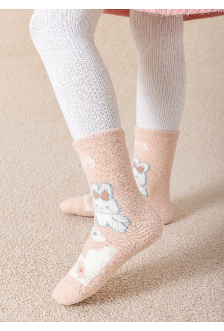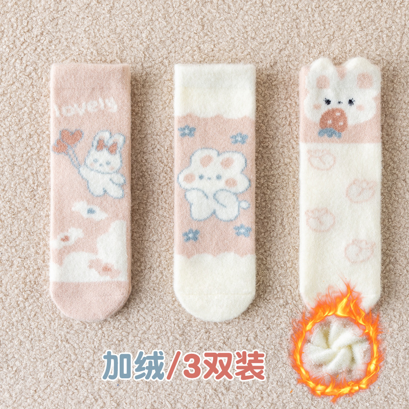 어린이 양말 겨울 기모 두꺼운 밍크 벨벳 튜브 양말 소녀 한국 만화 토끼 따뜻한 어린이 양말