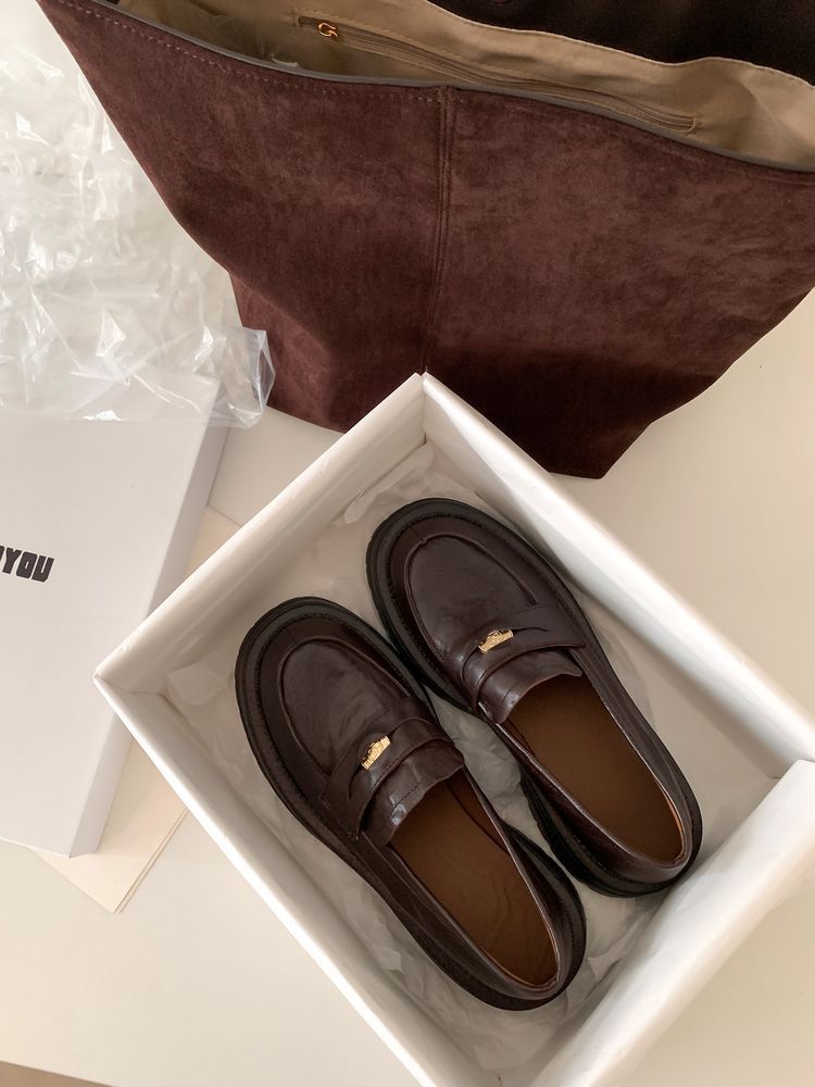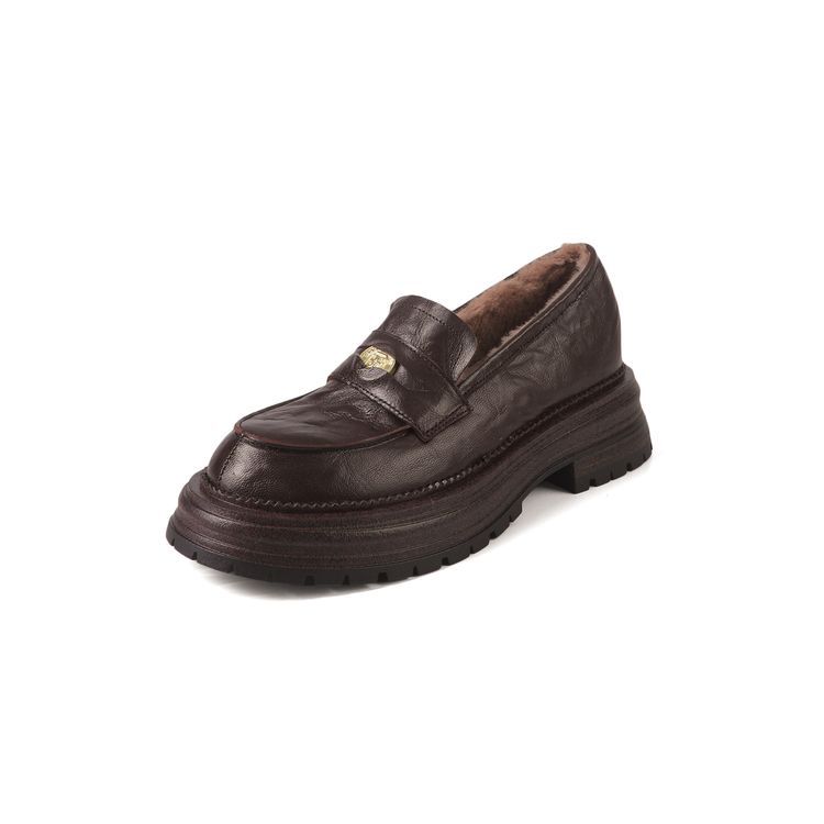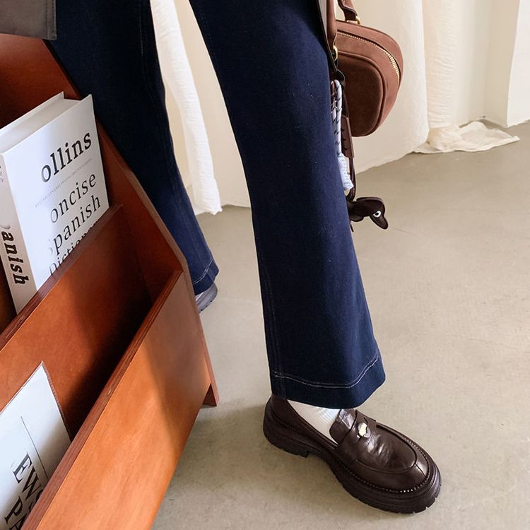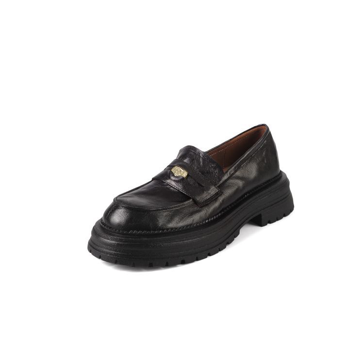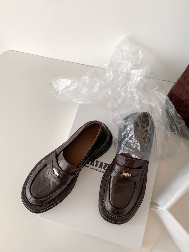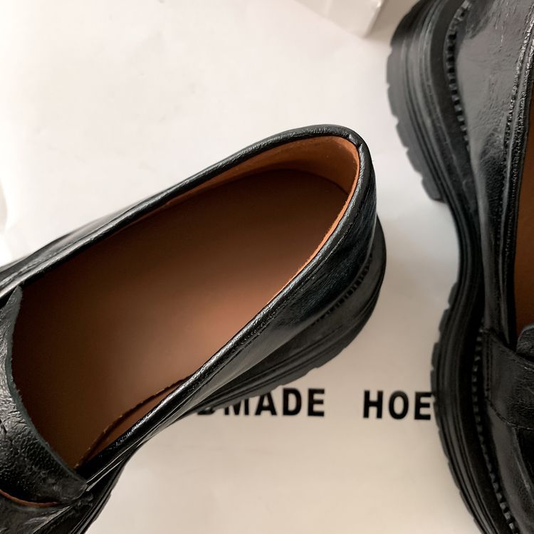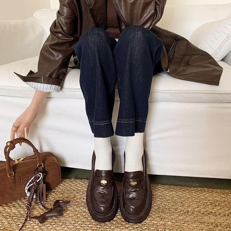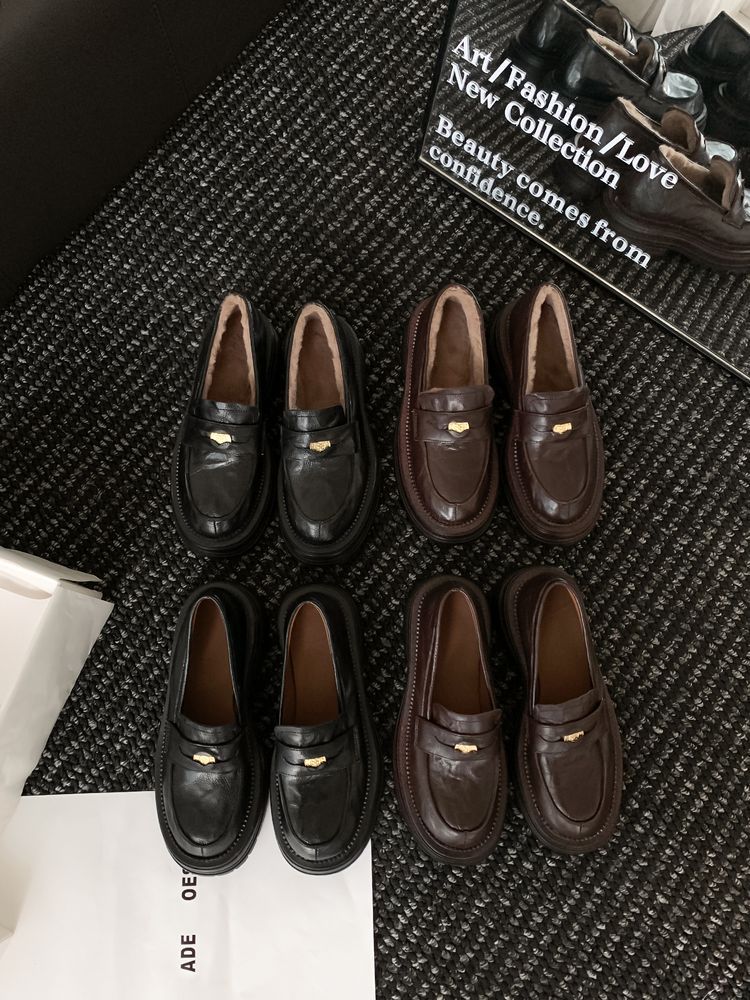 양가죽 두꺼운 밑창 로퍼 여성용 작은 가죽 신발 가을 및 겨울 새로운 라운드 토 미드 힐 슬리브 로우 탑 딥 입 싱글 레이어 신발 여성용스토어 가기