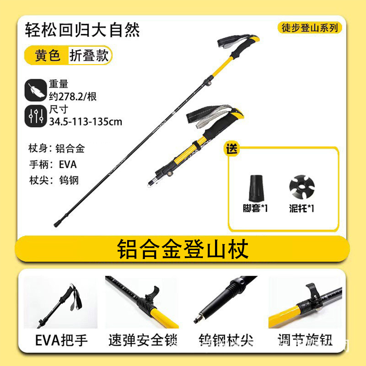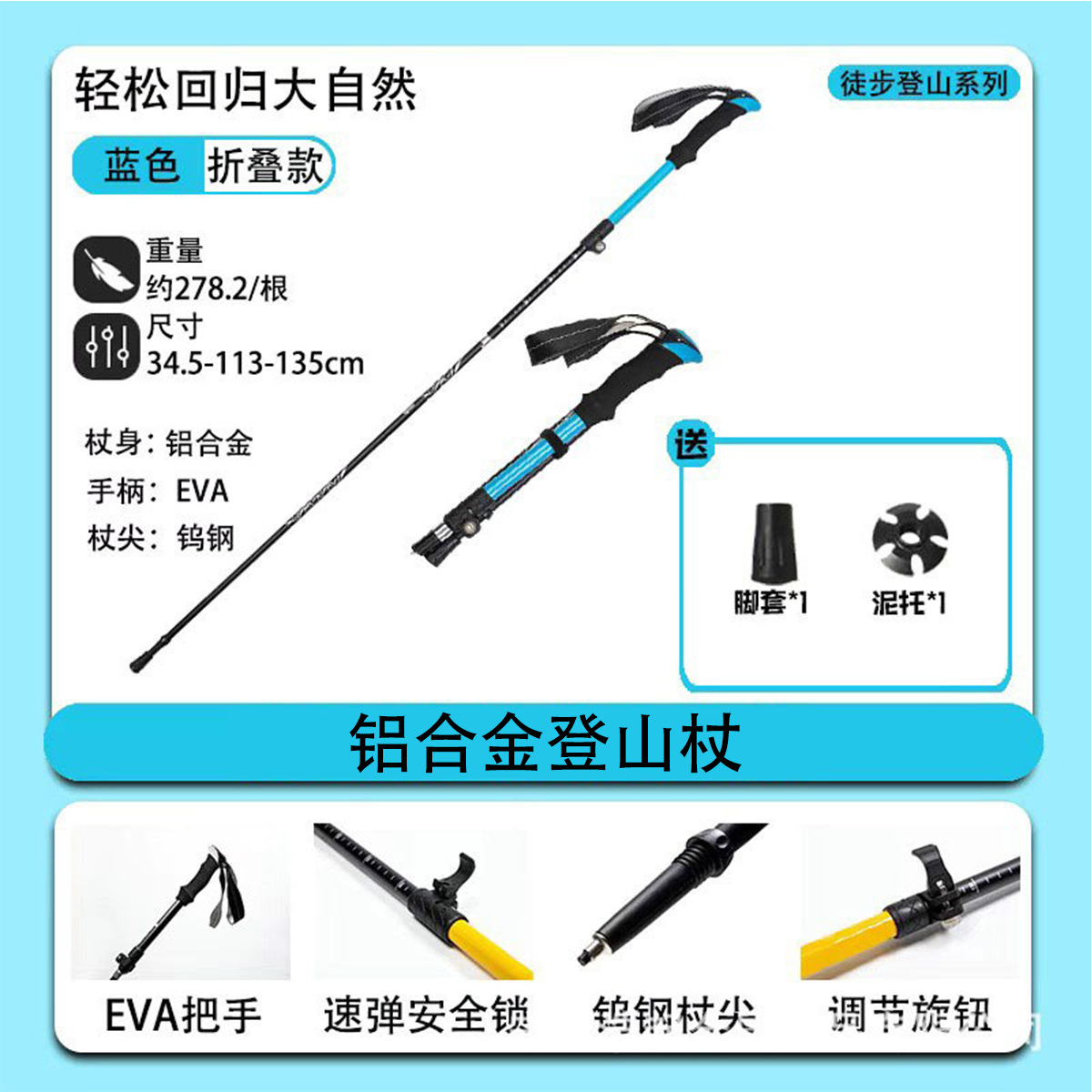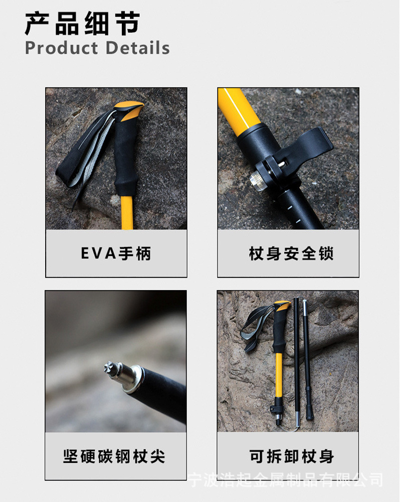 국경 간 접는 알펜 스톡 알루미늄 합금 전문 탄소 산 등반 지팡이 5 섹션 외부 잠금 휴대용 지팡이 자율 주행 투어