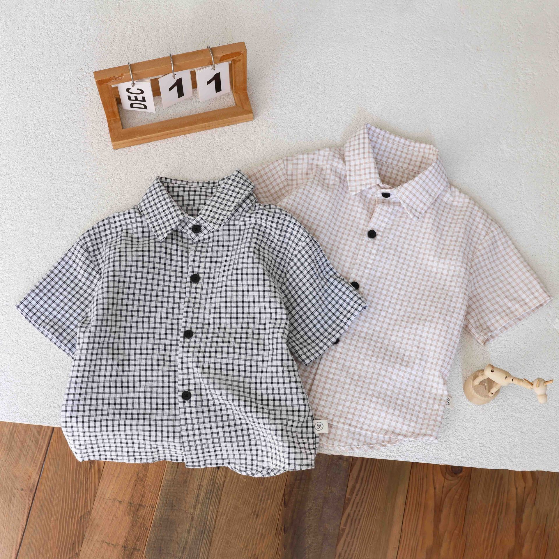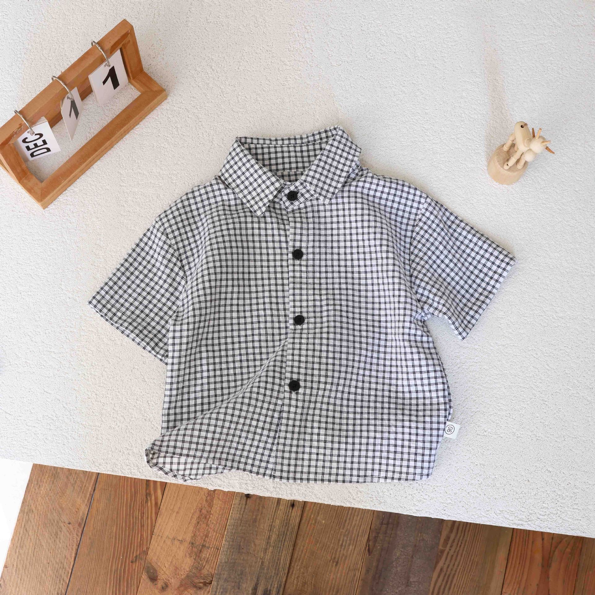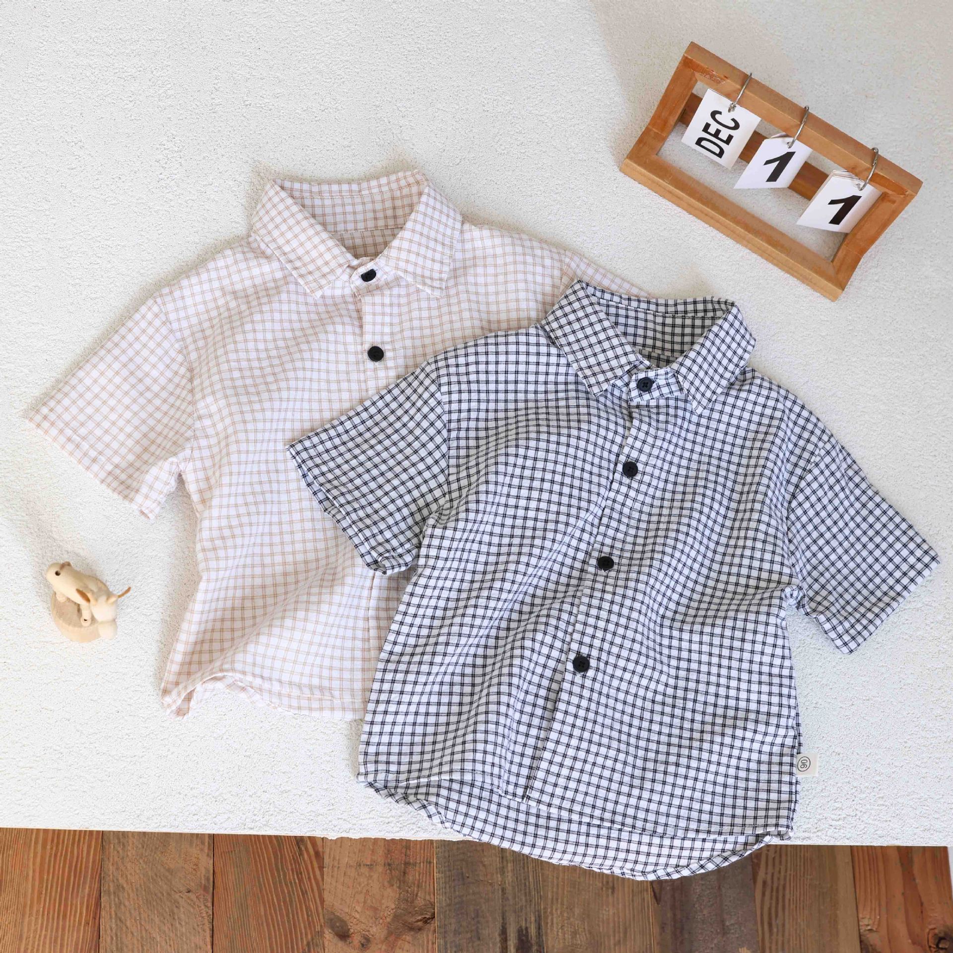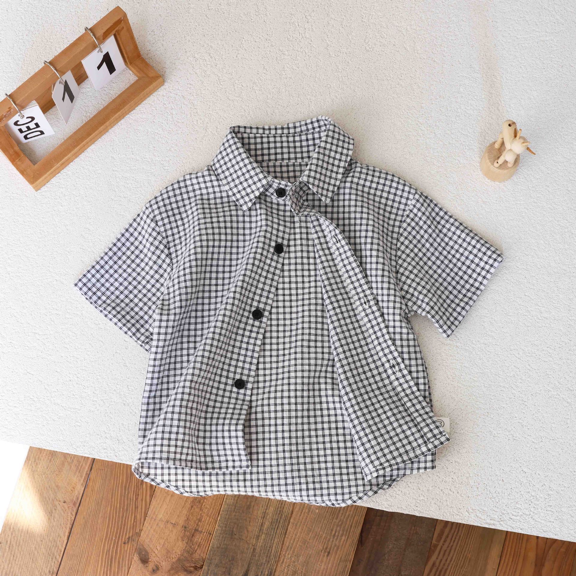 남학생 격자 무늬 셔츠 여름 반팔 어린이 셔츠 2025 중소 어린이를위한 새로운 유행 캐주얼 격자 무늬 셔츠 트렌디스토어 가기