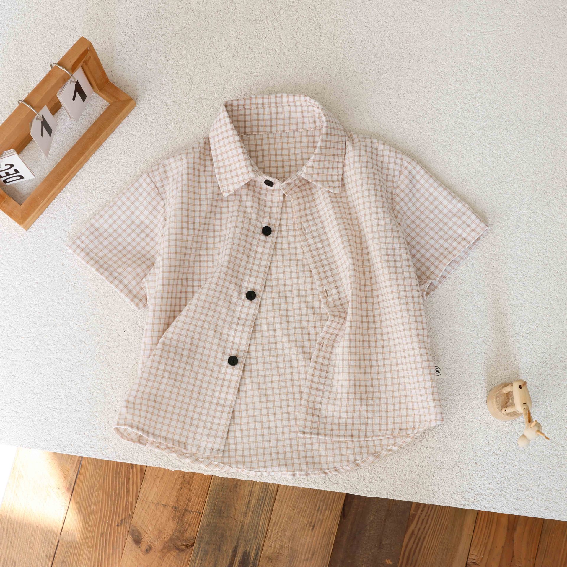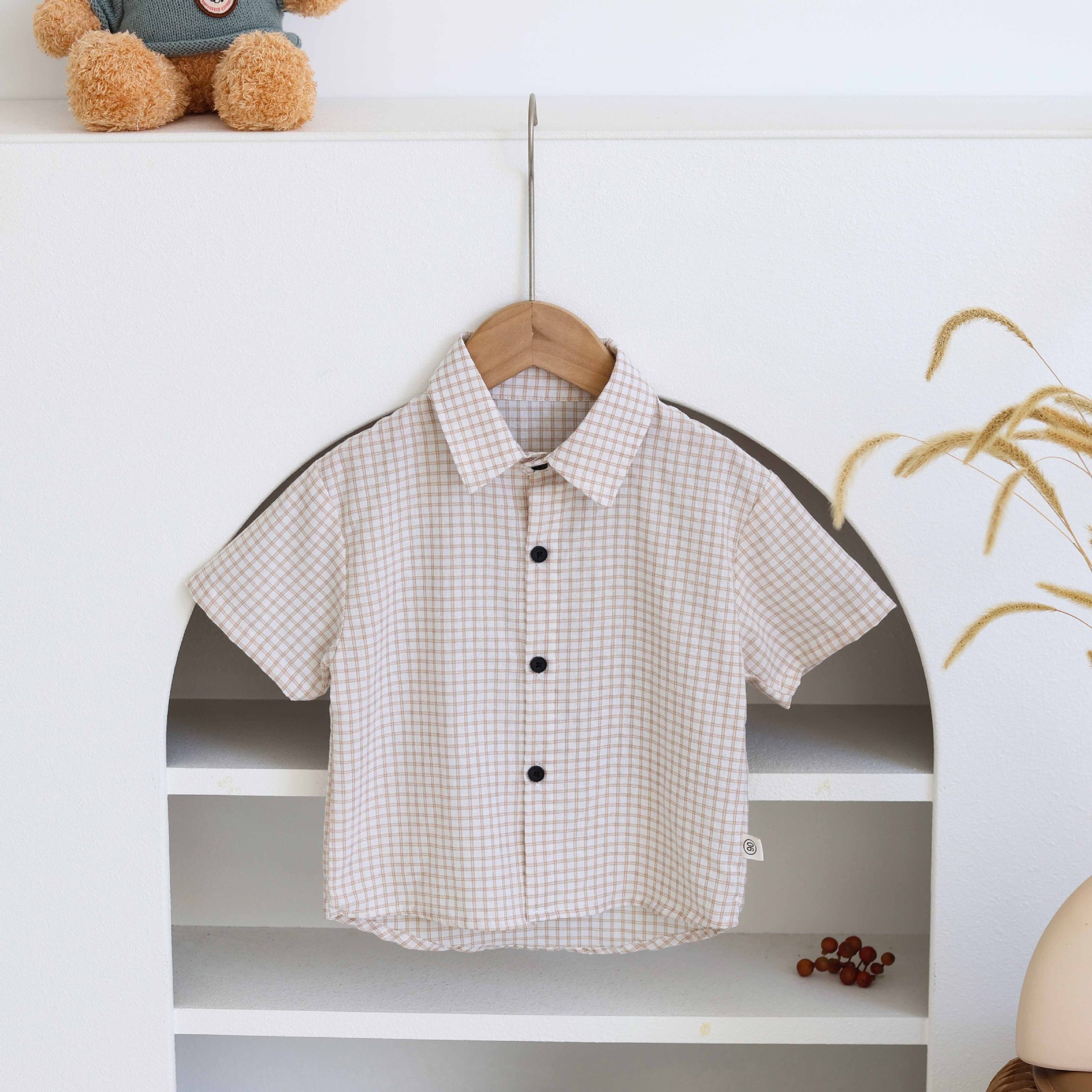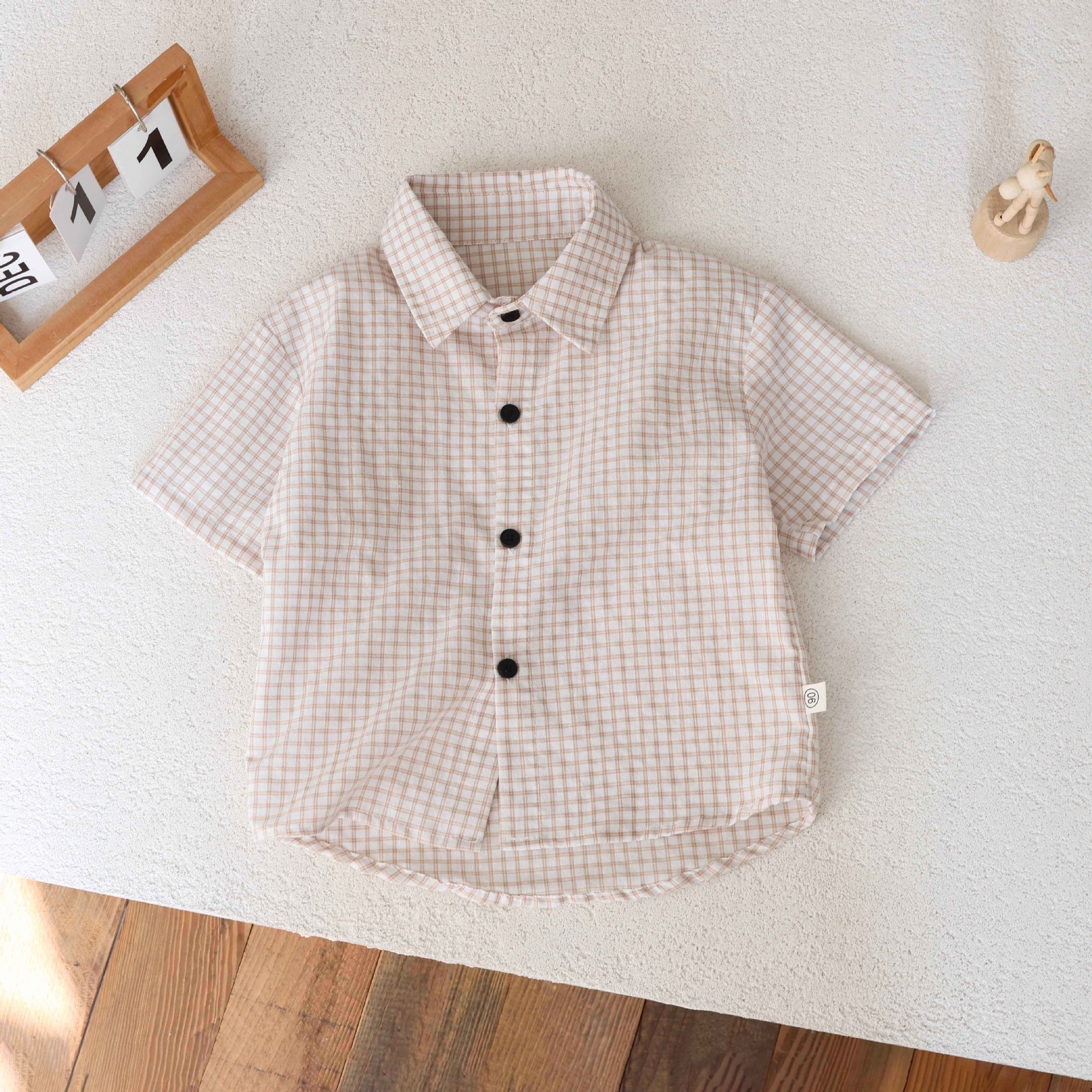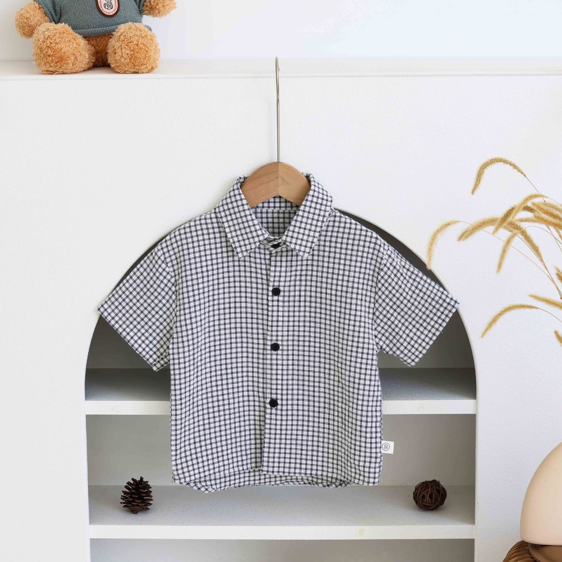 남학생 격자 무늬 셔츠 여름 반팔 어린이 셔츠 2025 중소 어린이를위한 새로운 유행 캐주얼 격자 무늬 셔츠 트렌디스토어 가기