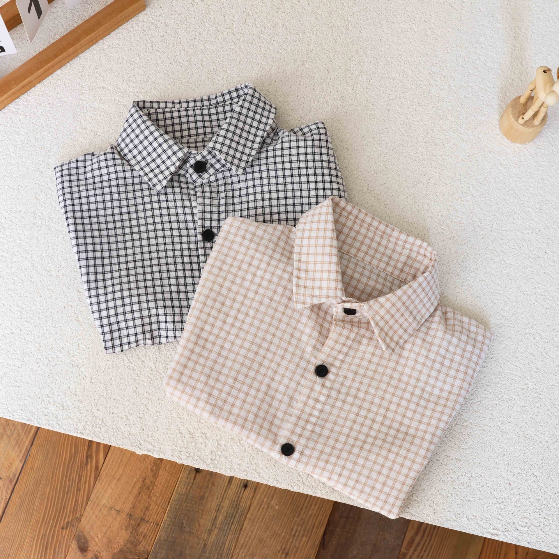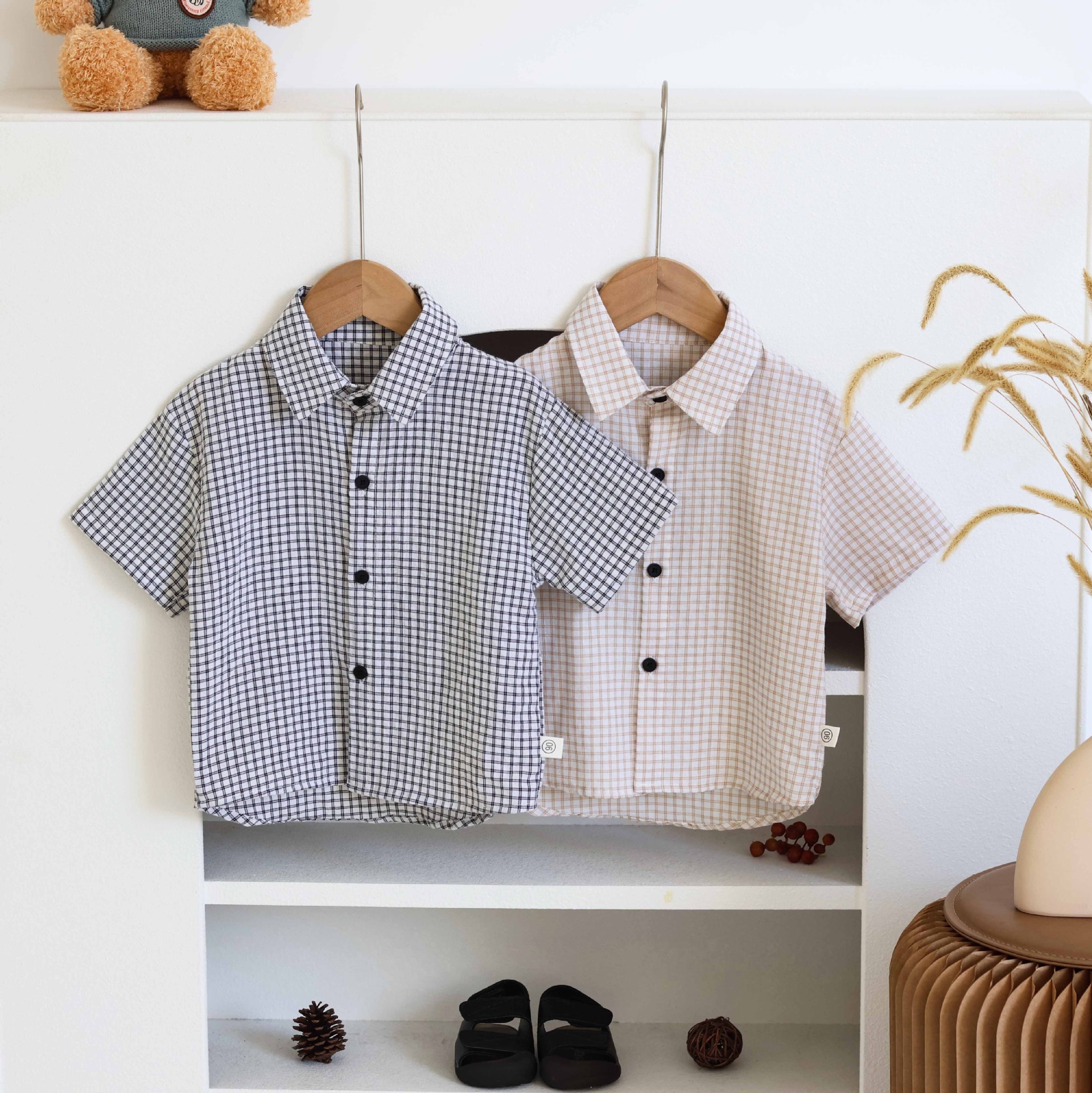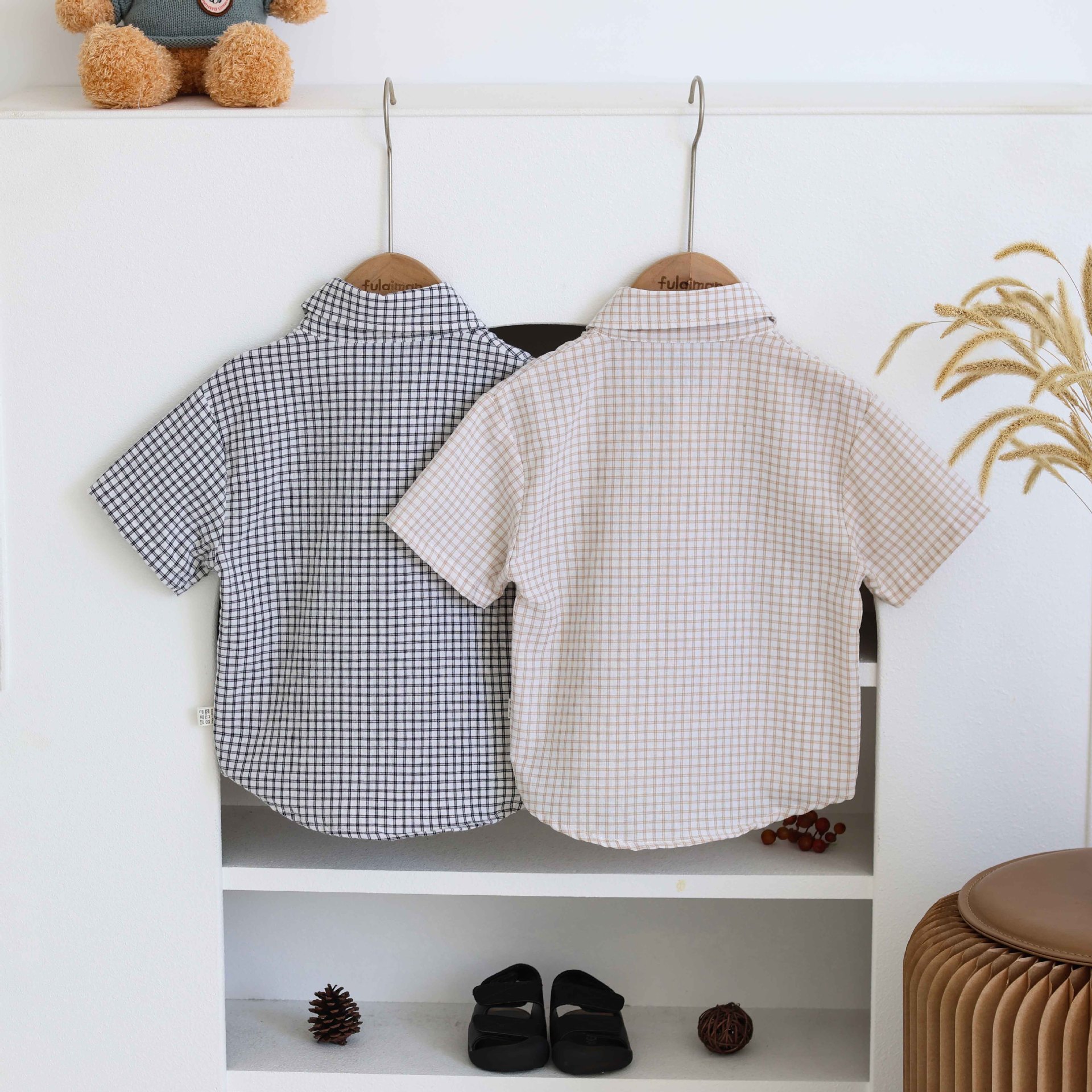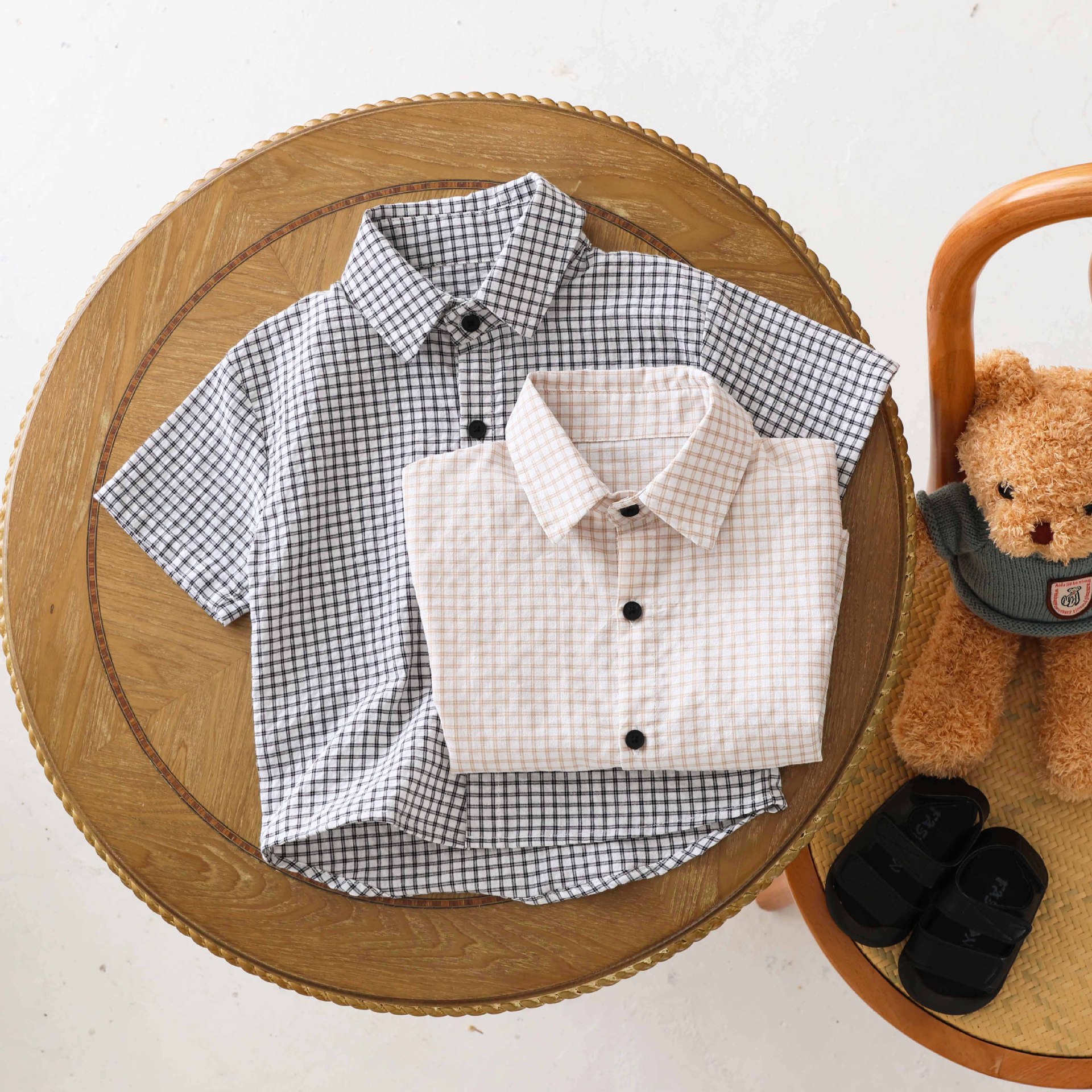 남학생 격자 무늬 셔츠 여름 반팔 어린이 셔츠 2025 중소 어린이를위한 새로운 유행 캐주얼 격자 무늬 셔츠 트렌디스토어 가기