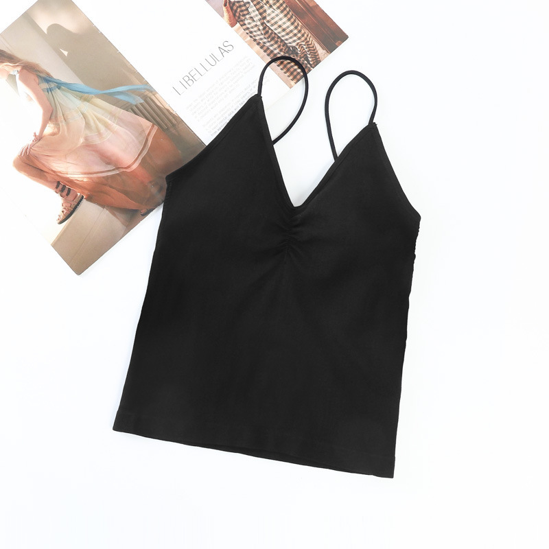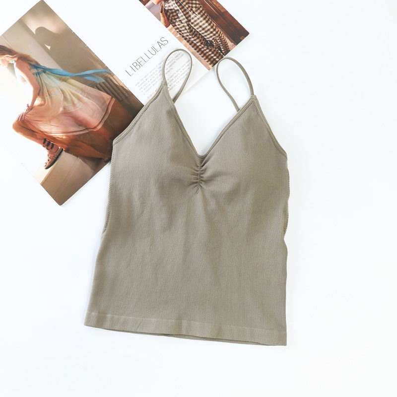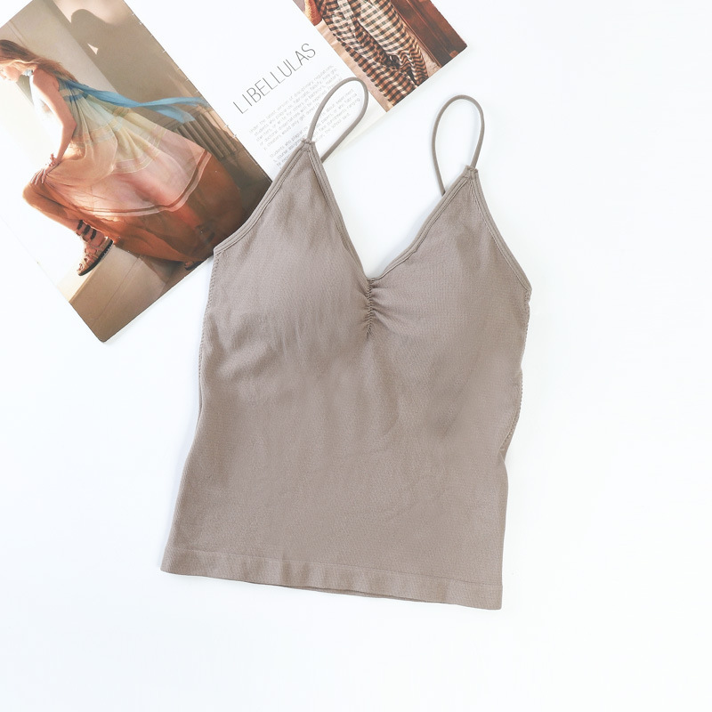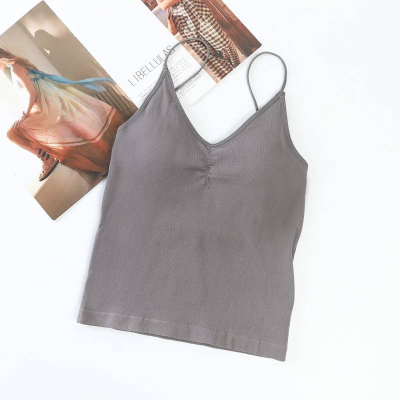 2021 년 가을과 겨울 새로운 슬링 탑 외부 착용 고정 가슴 패드 실행하지 않는 컵 짧은 슬링베이스 조끼