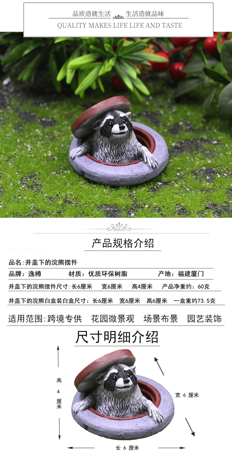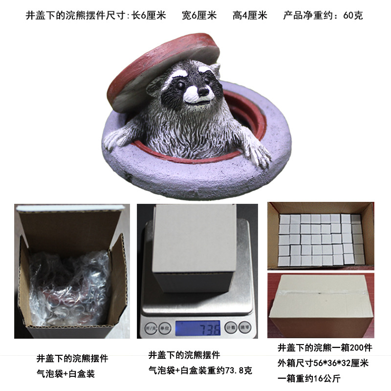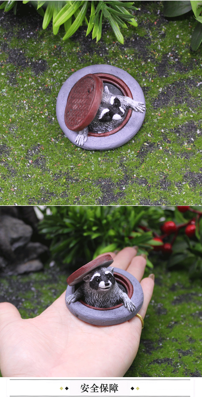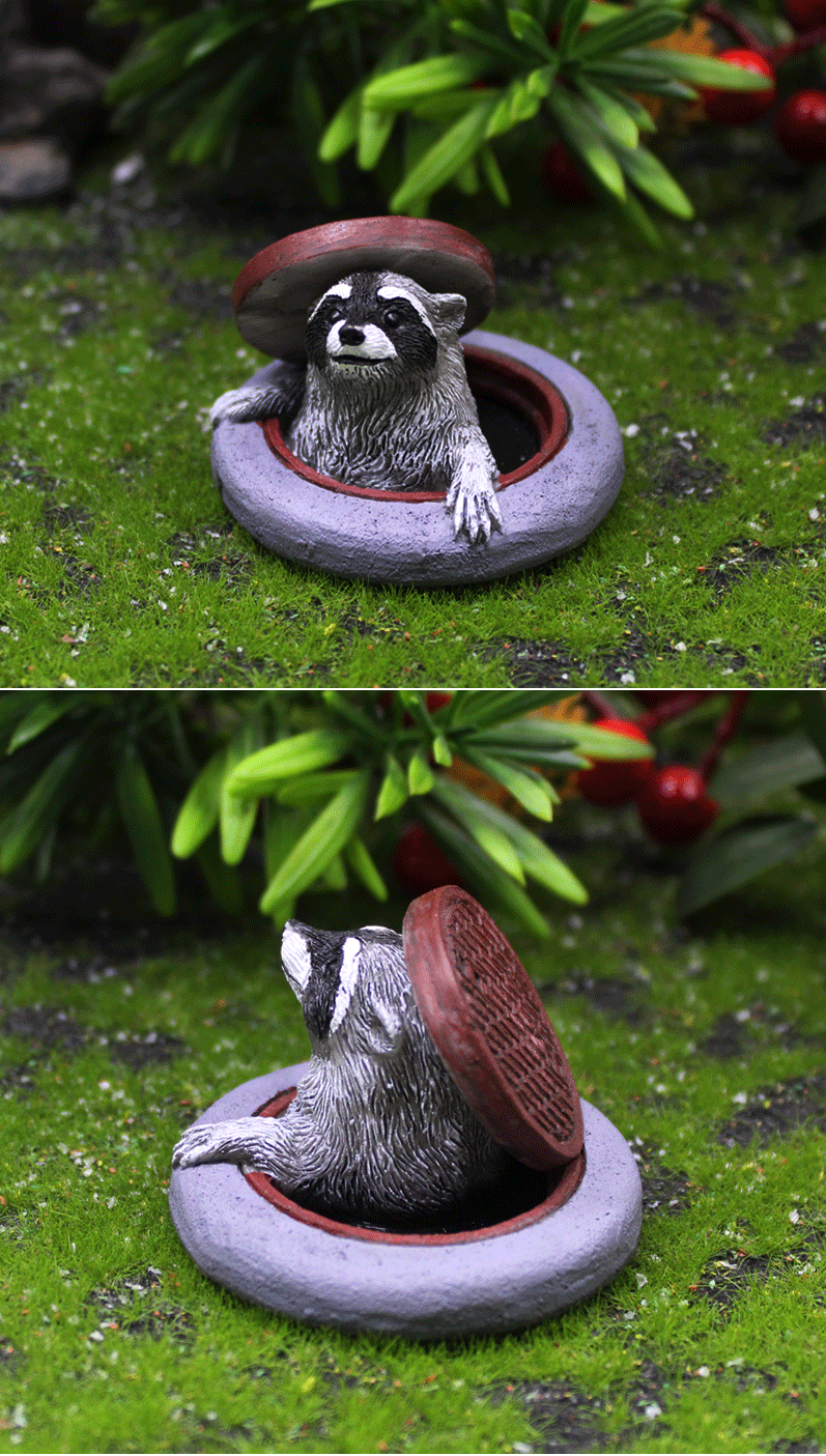 맨홀 아래 너구리 장식품 창조적 인 정원 마이크로 조경 안뜰 창조적 인 시뮬레이션 동물 국경 수지 장식