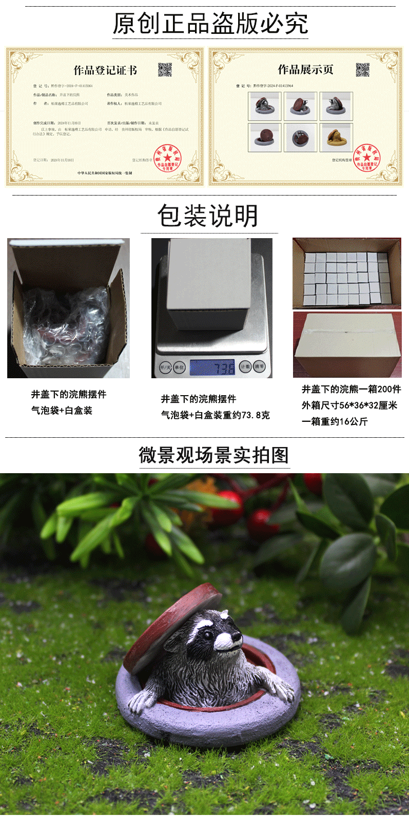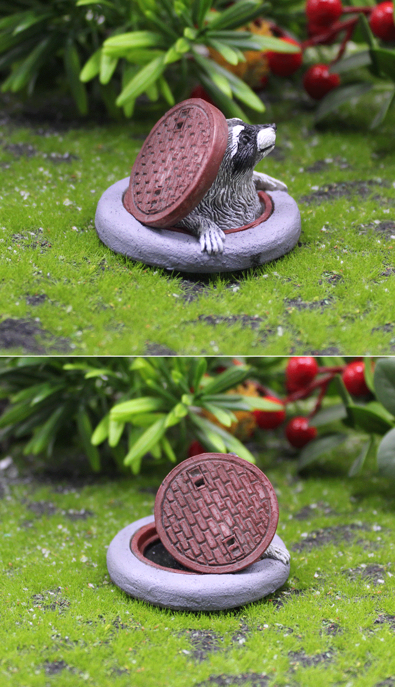 맨홀 아래 너구리 장식품 창조적 인 정원 마이크로 조경 안뜰 창조적 인 시뮬레이션 동물 국경 수지 장식스토어 가기