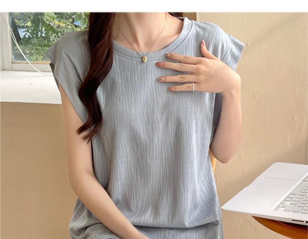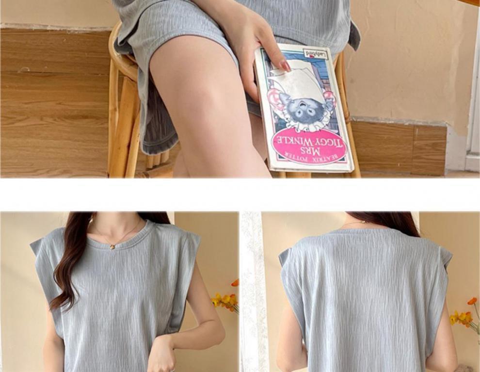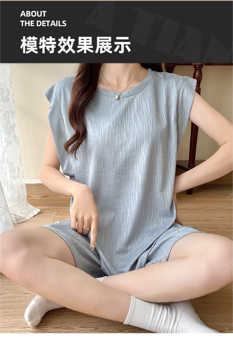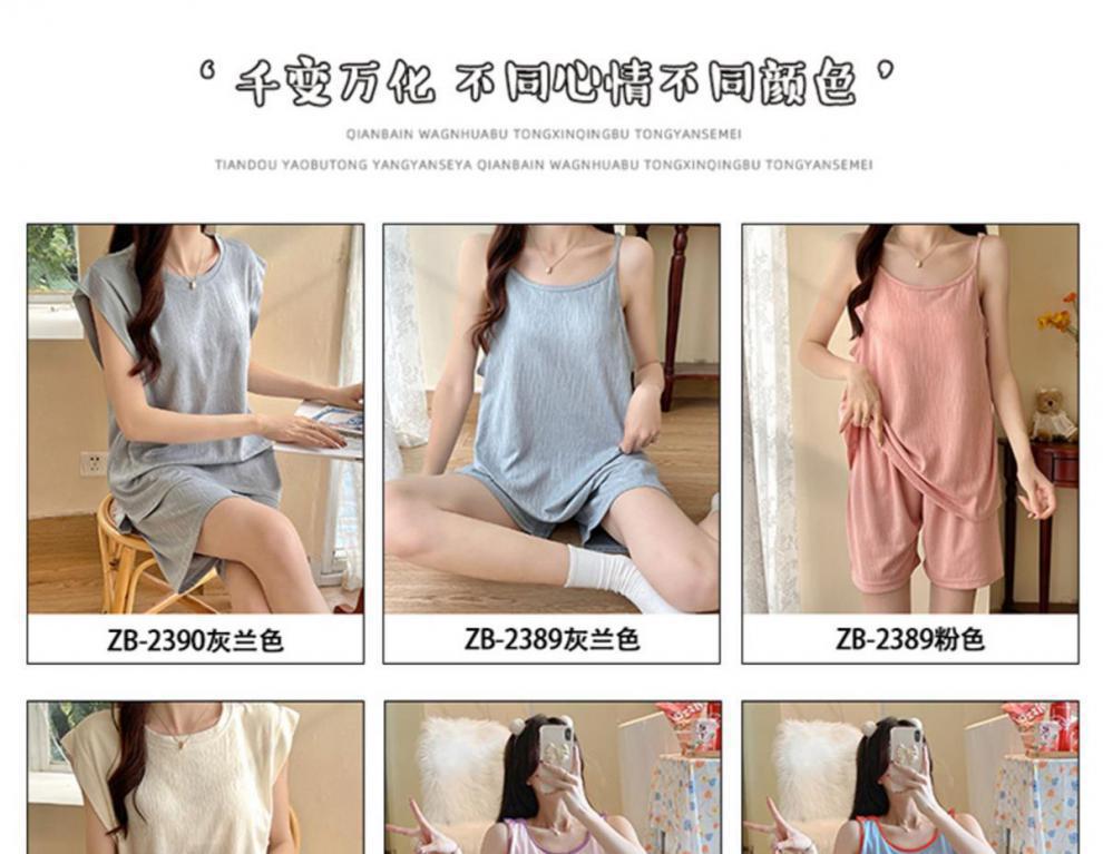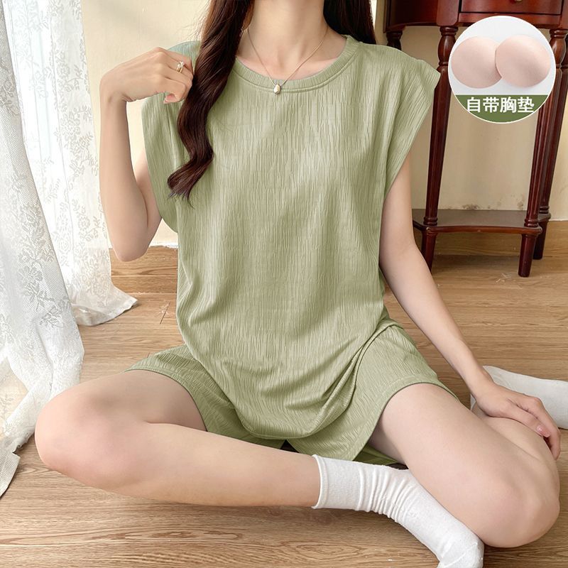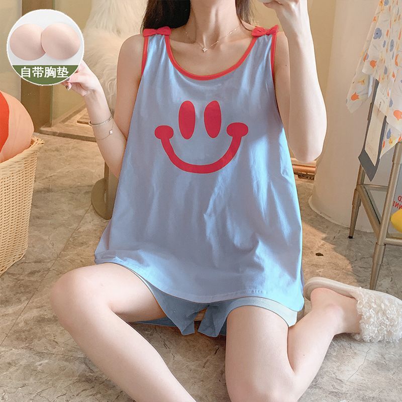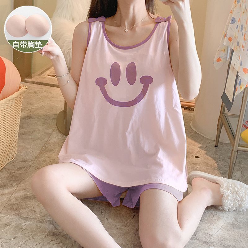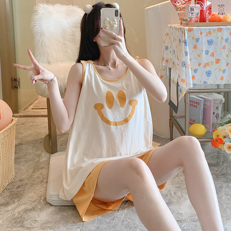 2023 여름 새로운 순면 잠옷 여자 조끼 가슴 패드 단색 투피스 학생 게으른 스타일 홈 옷